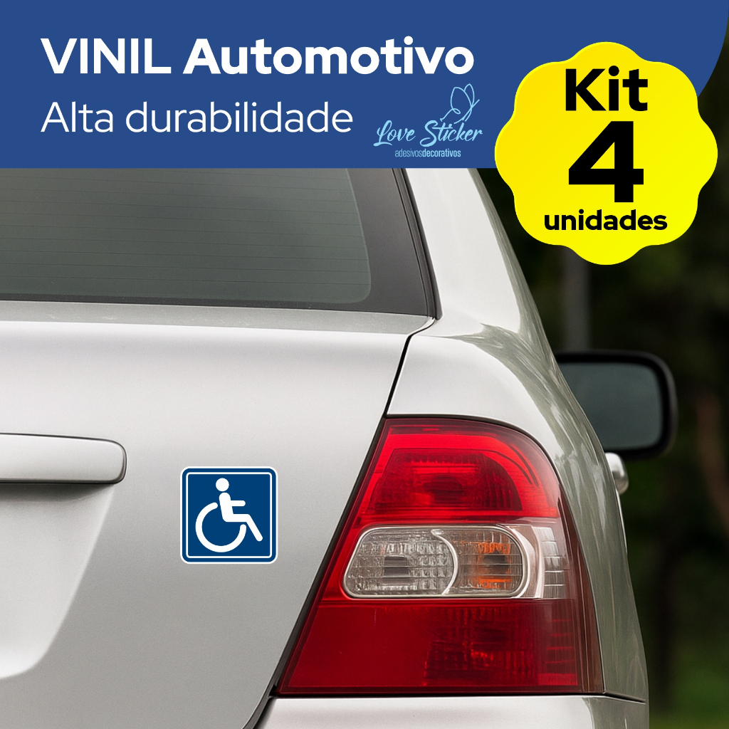 🚗 Kit 4 Adesivos PCD para Veículo – Sinalização Veicular Deficiente Físico em Vinil de Alta Durabilidade