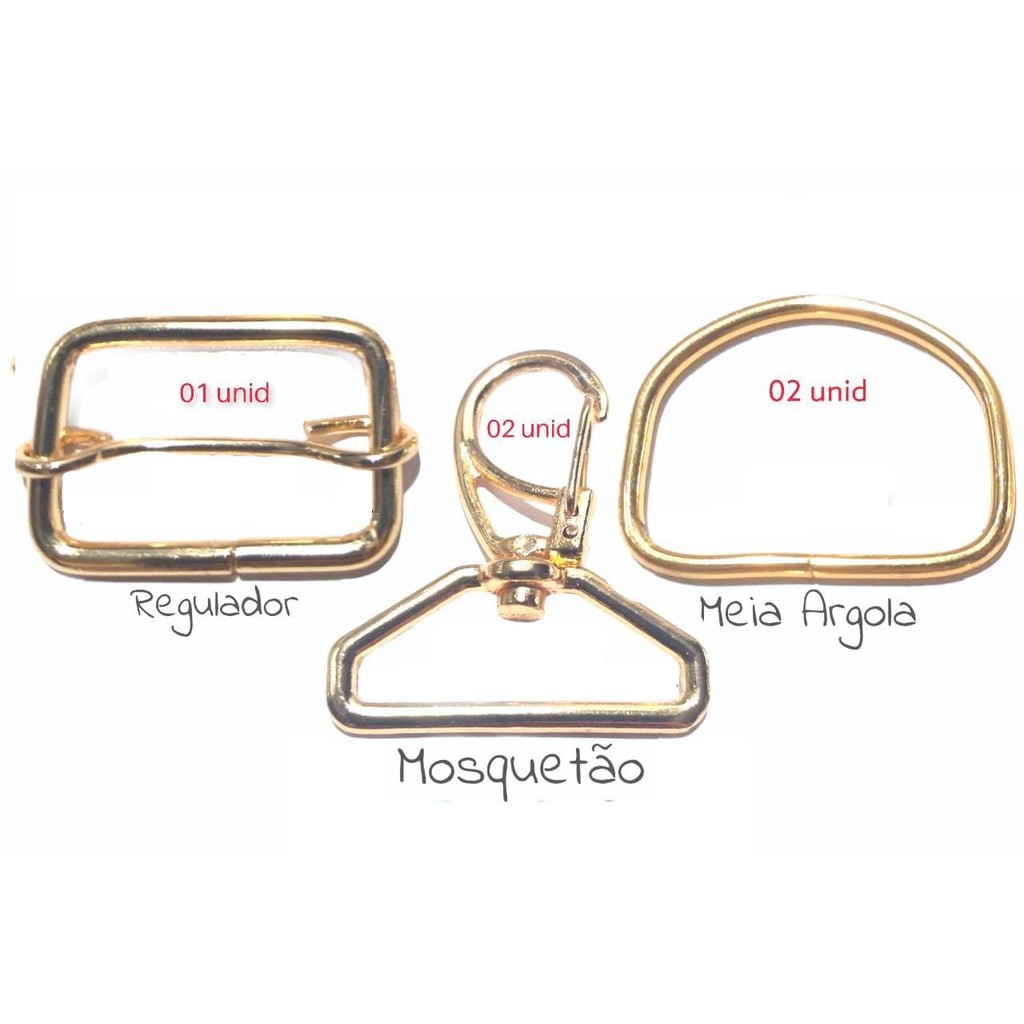 Kit DOURADO 02 Mosquetão para Bolsa 20 mm 2cm + 02 Meia Argola para Bolsa 20 mm 2cm + 01 Regulador para Bolsa 20 mm 2cm