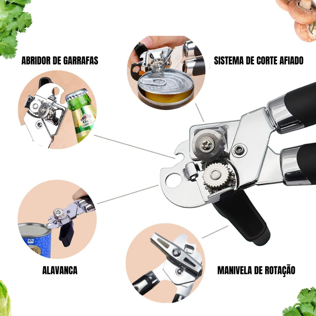 Abridor De Latas E Garrafas Aço Inox Profissional Casa Envio Imediato