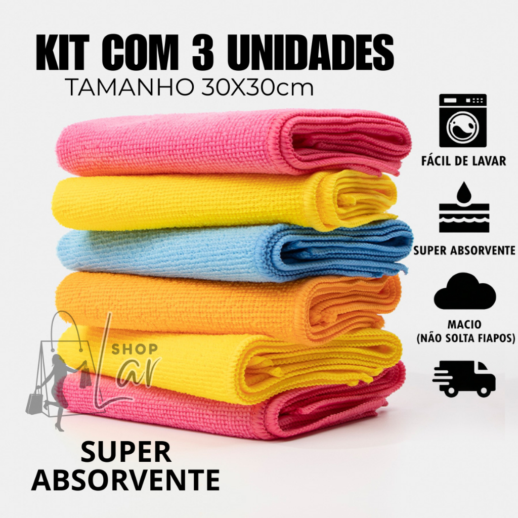 Kit 3 Panos de Pia Super Absorvente Microfibra Cozinha para Limpeza em Geral 28x28cm