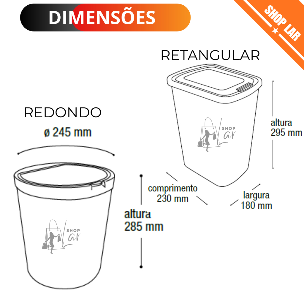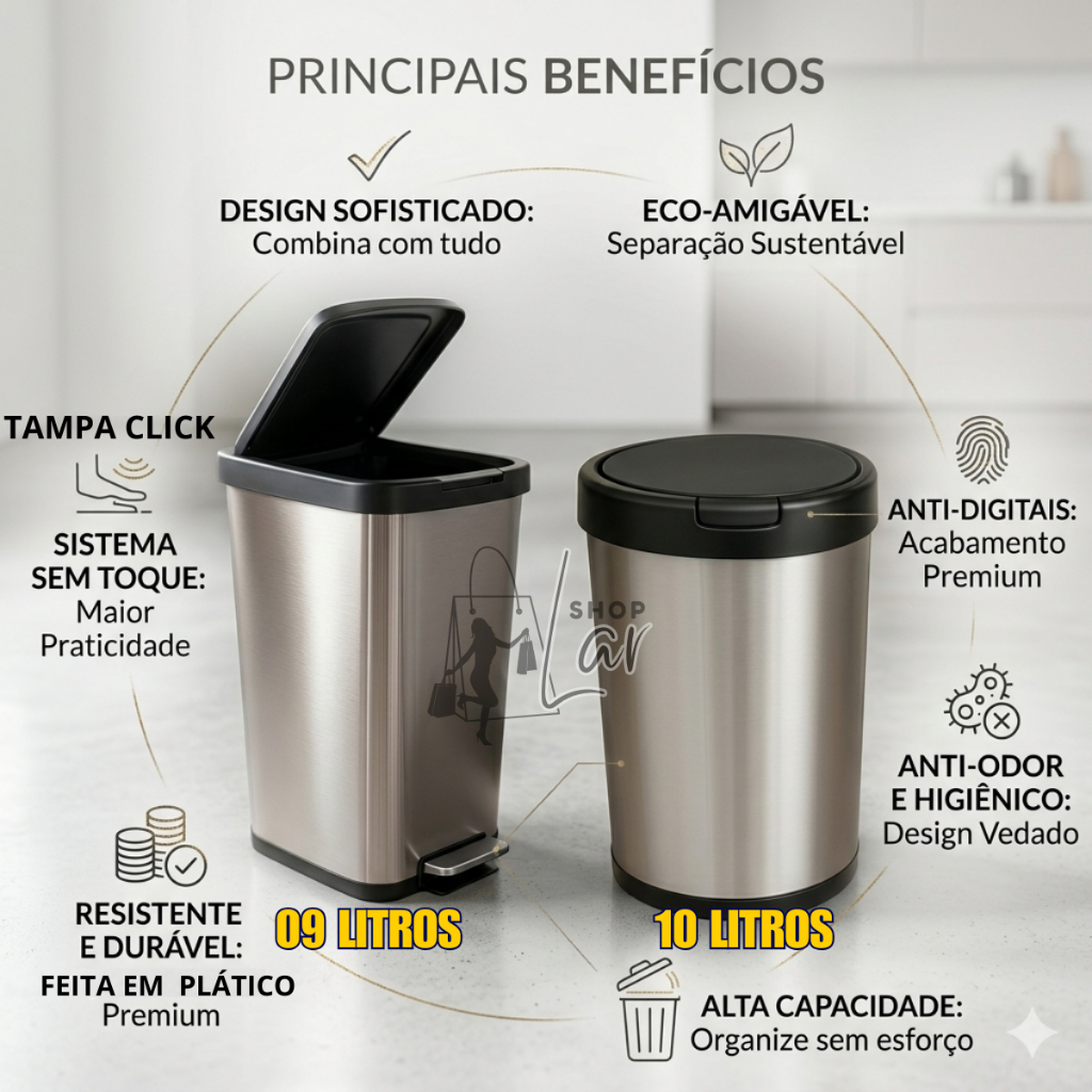 Lixeira Cesto de Lixo 10 | 9 Litros Tampa Click Para Banheiro Cozinha Escritório Quarto