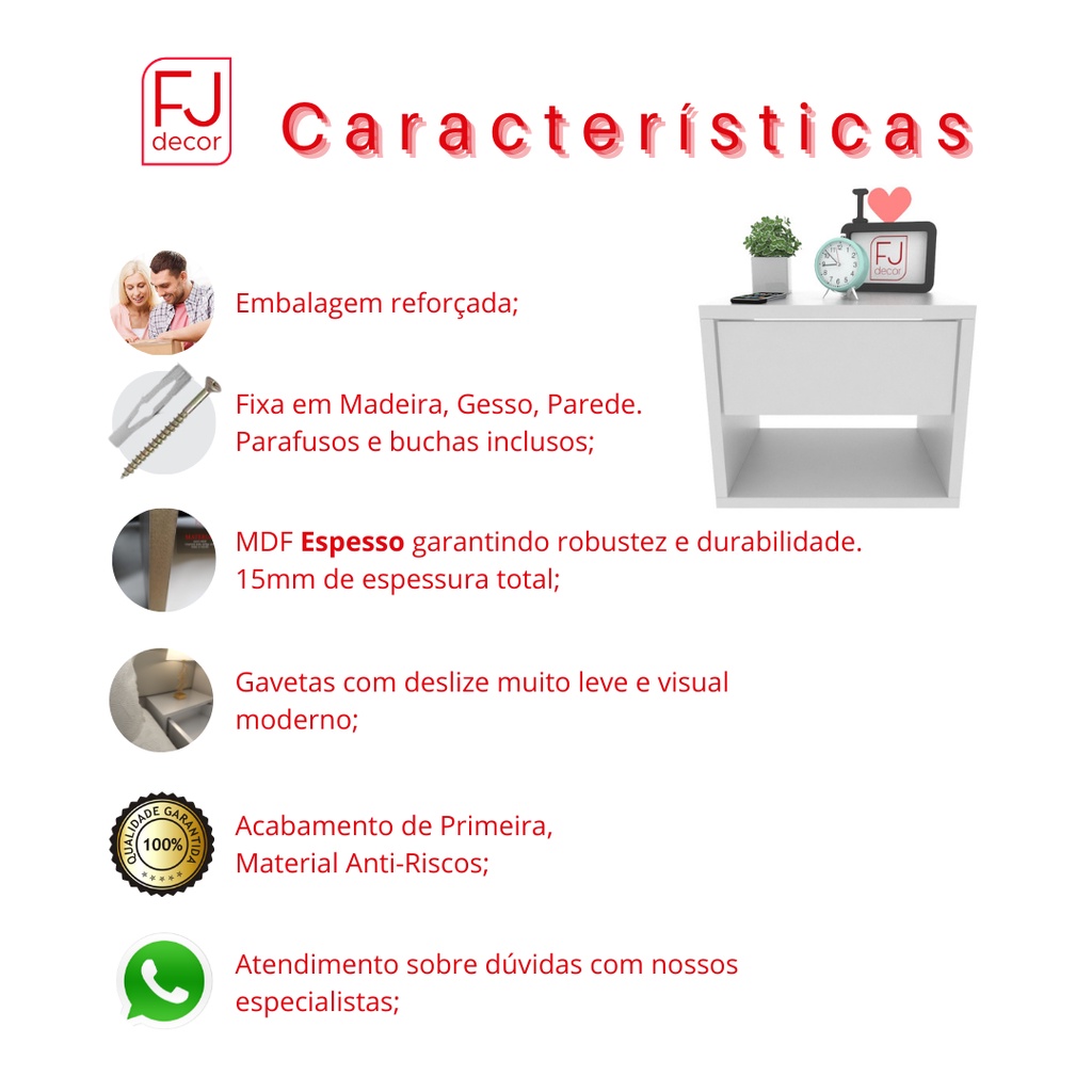 Kit 2 Mesas de Cabeceira 40cm MDF com Gaveta Telescópica