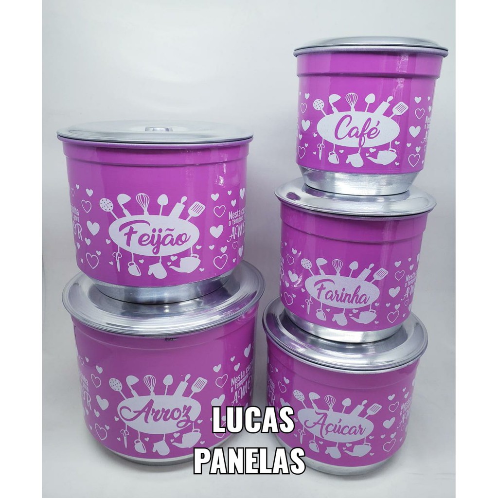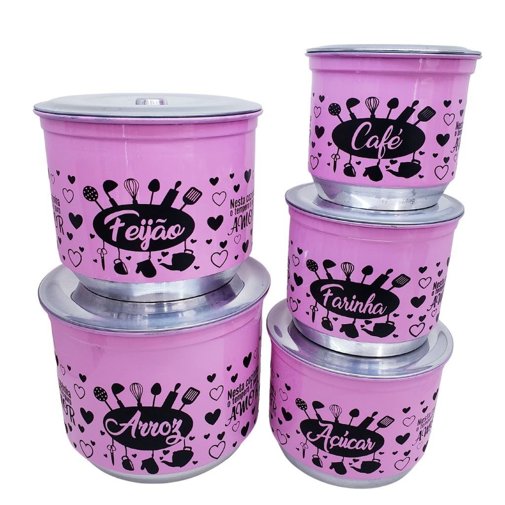 Jogo De Latas Alumínio Guarda Mantimentos 5 Peças