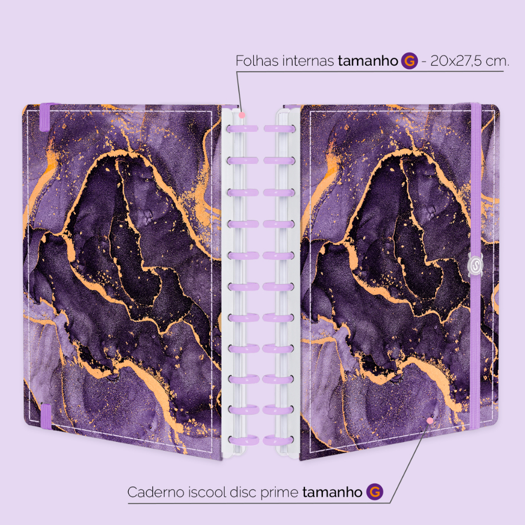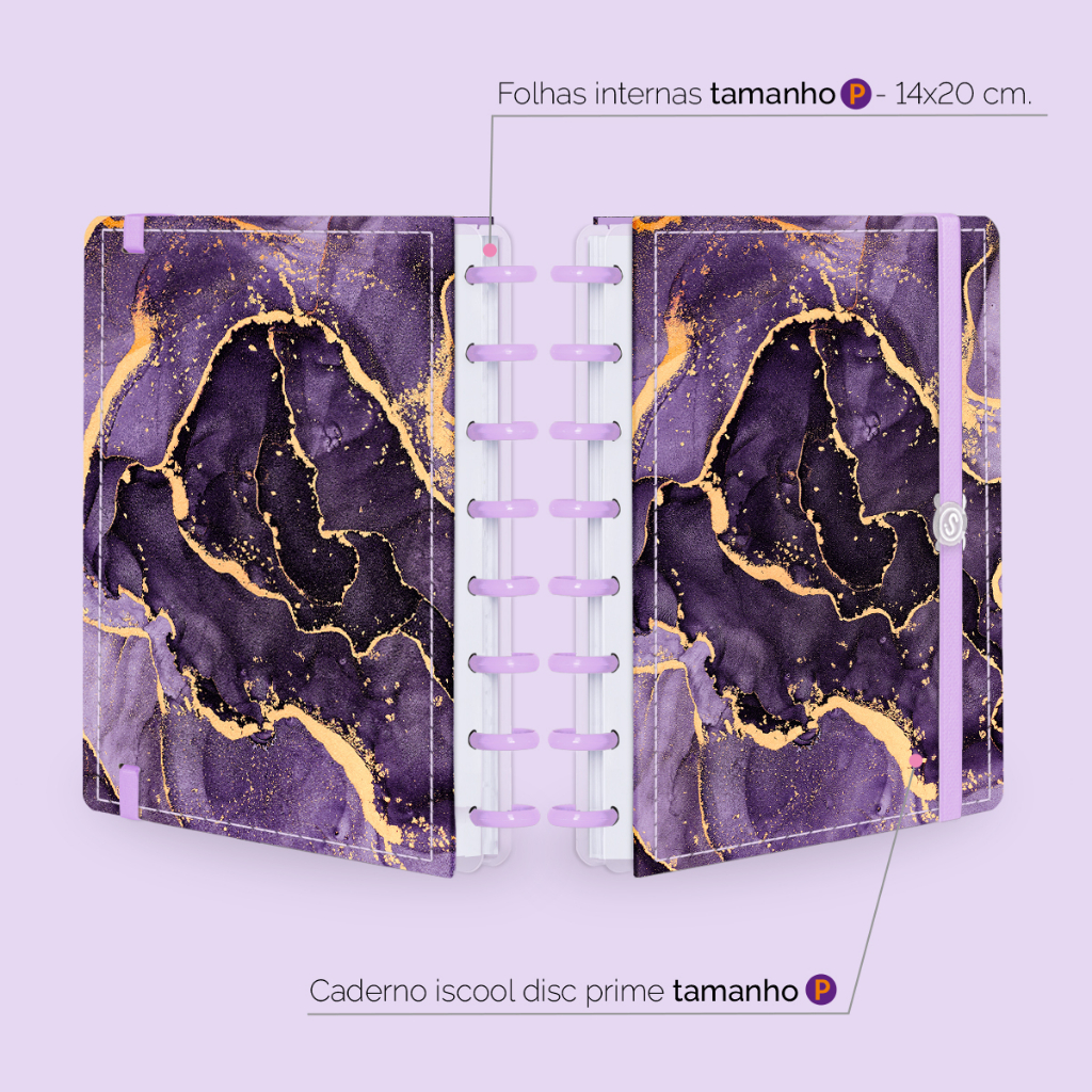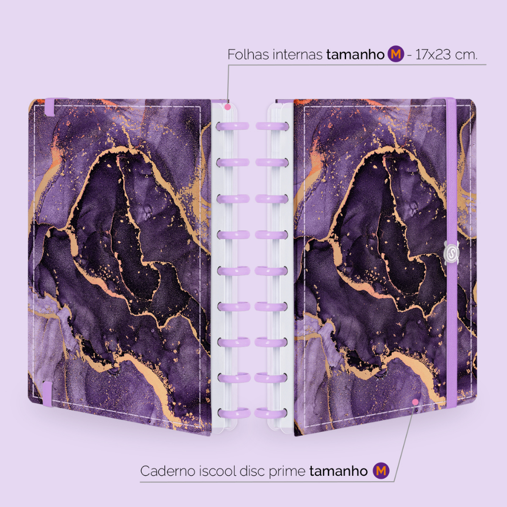 Caderno De Disco Inteligente Iscool Capa Dura 80 Folhas Mármore Roxo