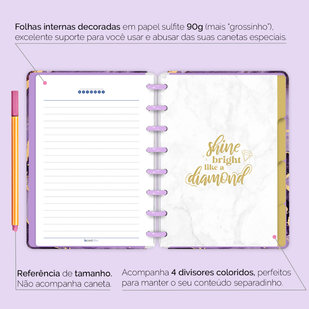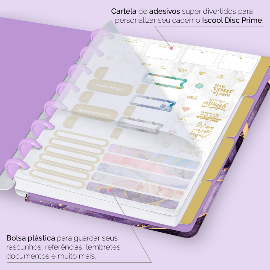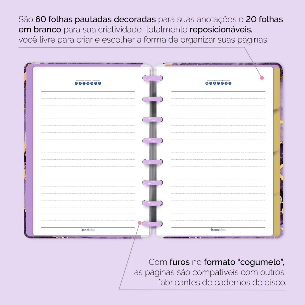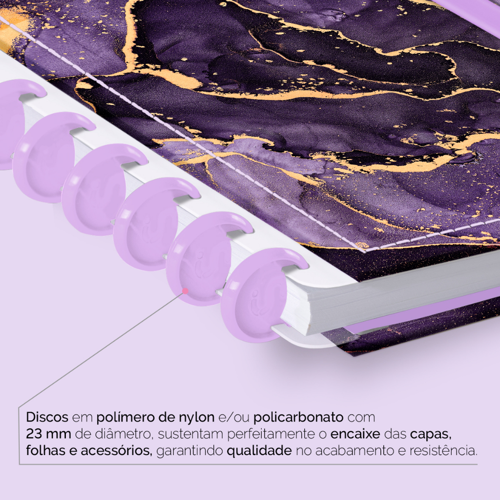 Caderno De Disco Inteligente Iscool Capa Dura 80 Folhas Mármore Roxo