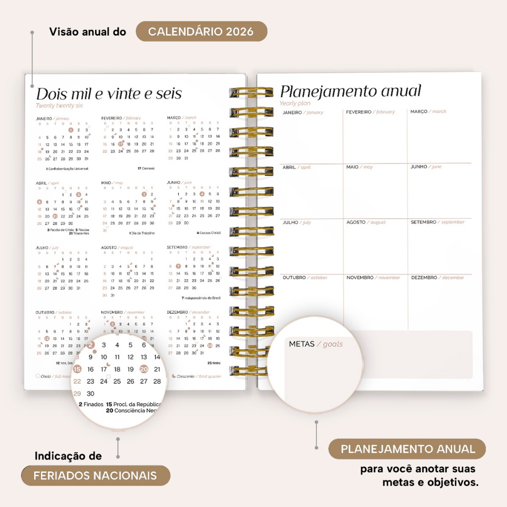 Agenda Planner 1 Dia Por Página 2026 Minimalista Cores
