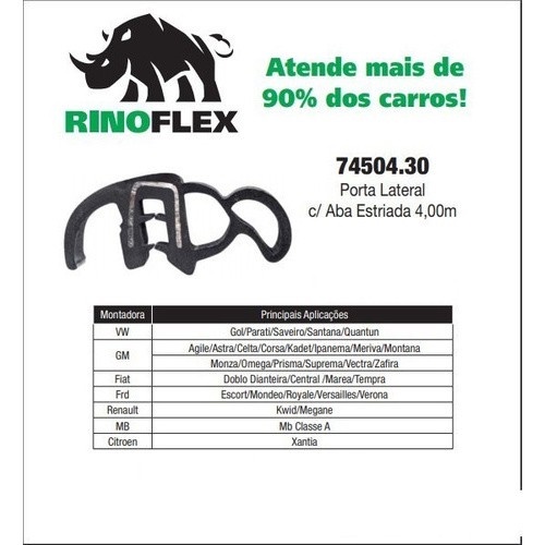 1 Borracha Porta Lateral Celta Monza Xantia Corsa Meriva Kwid Megane Escort Mondeo Marea Tampra Monza Agile Astra Zafira Aba Estriada 4,00m (Rinoflex) - c/ Aba Estriada