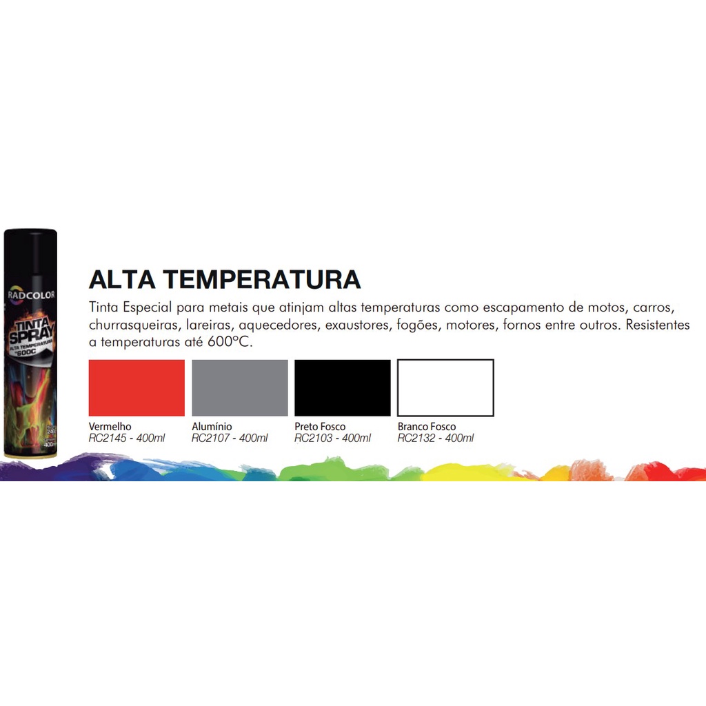 Tinta Spray Alta Temperatura 600º Alumínio (400 ml) Radnaq