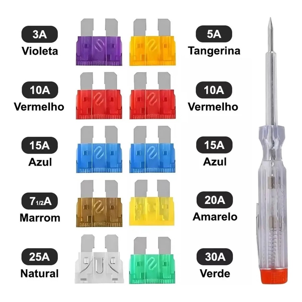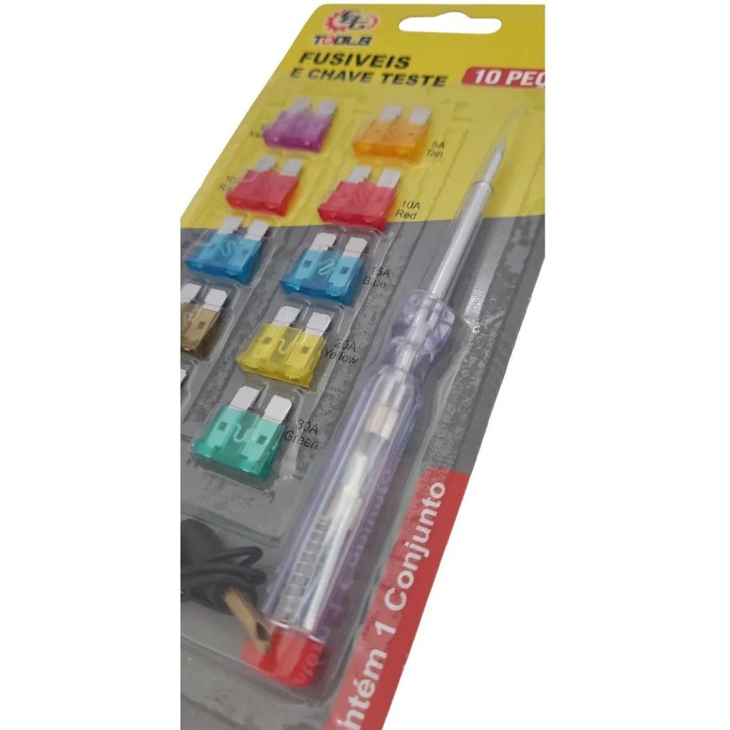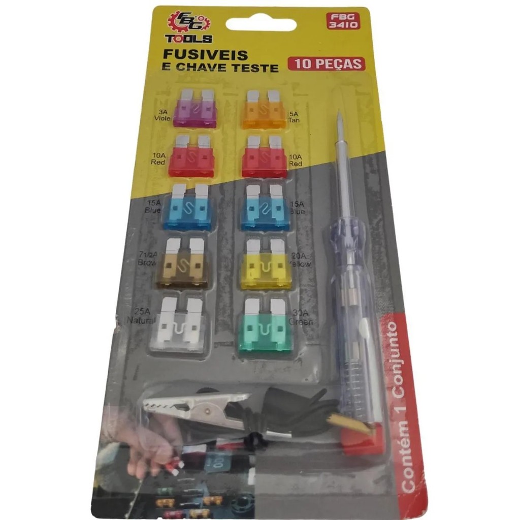 Kit 10 Fusível Grande Automotivo + Chave Teste Garra Jacaré