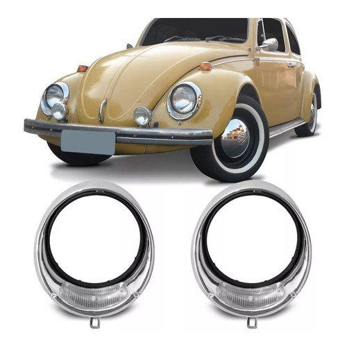 Par Aro Farol Fusca 1963 À 1972 Caminhão Mb 1113 Vw KOMBI ANTIGA ATÉ 1975 Cromado Tremendao