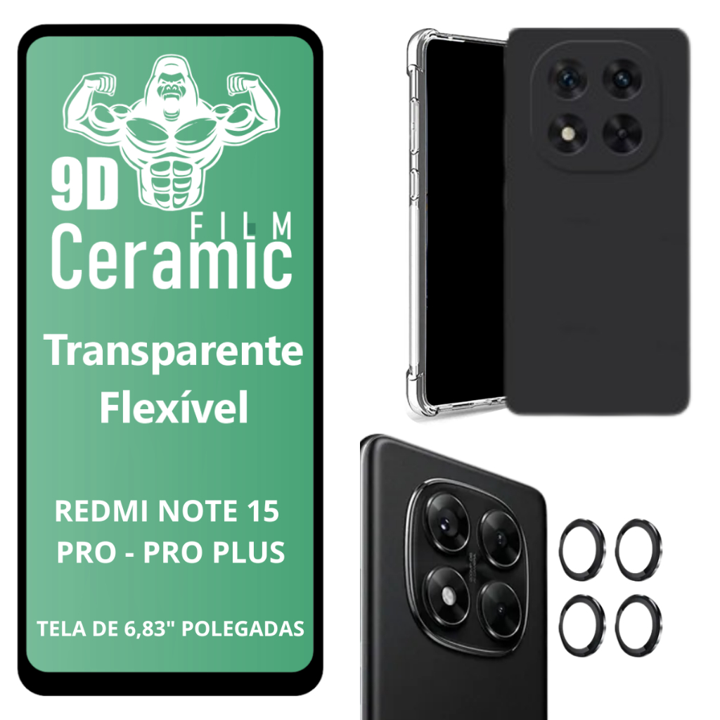 Película Cerâmica Para Redmi Note 15 PRO 5G - Pelíucla da Câmera - Capa Preta