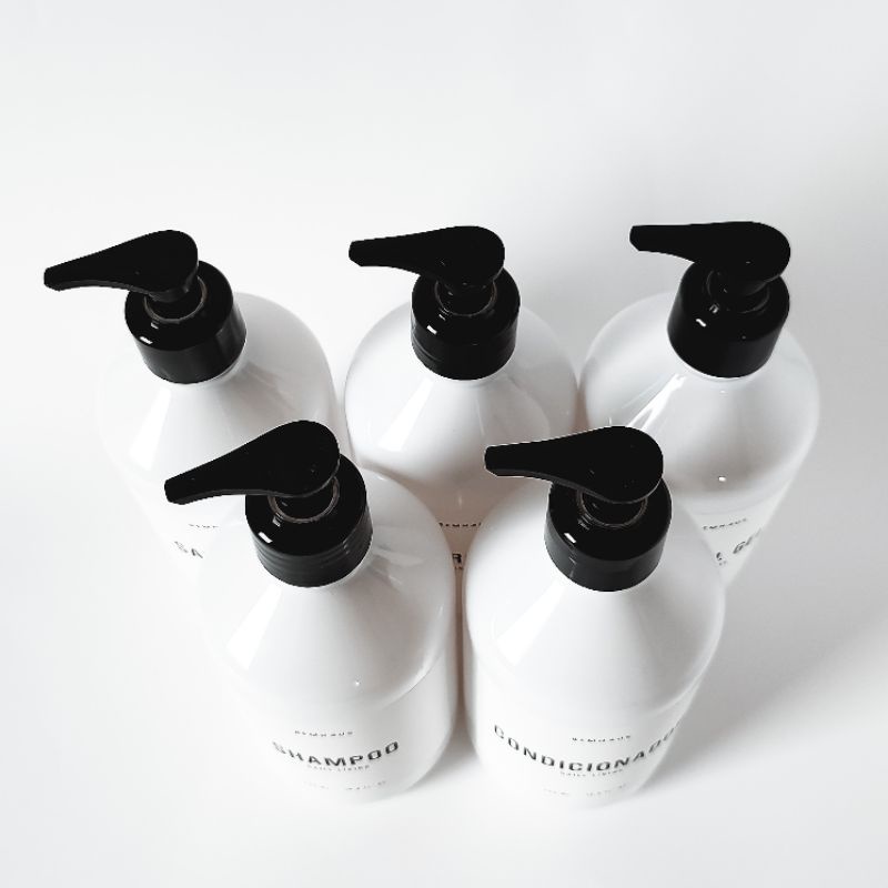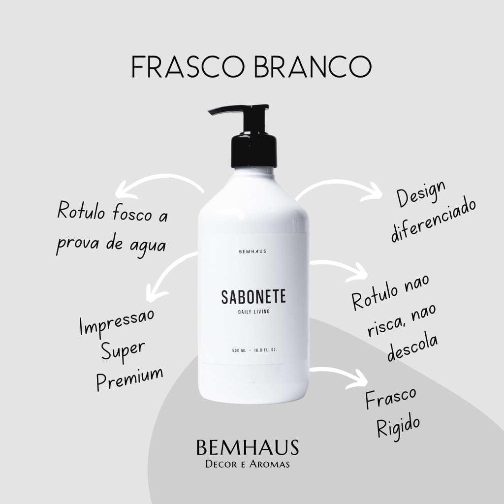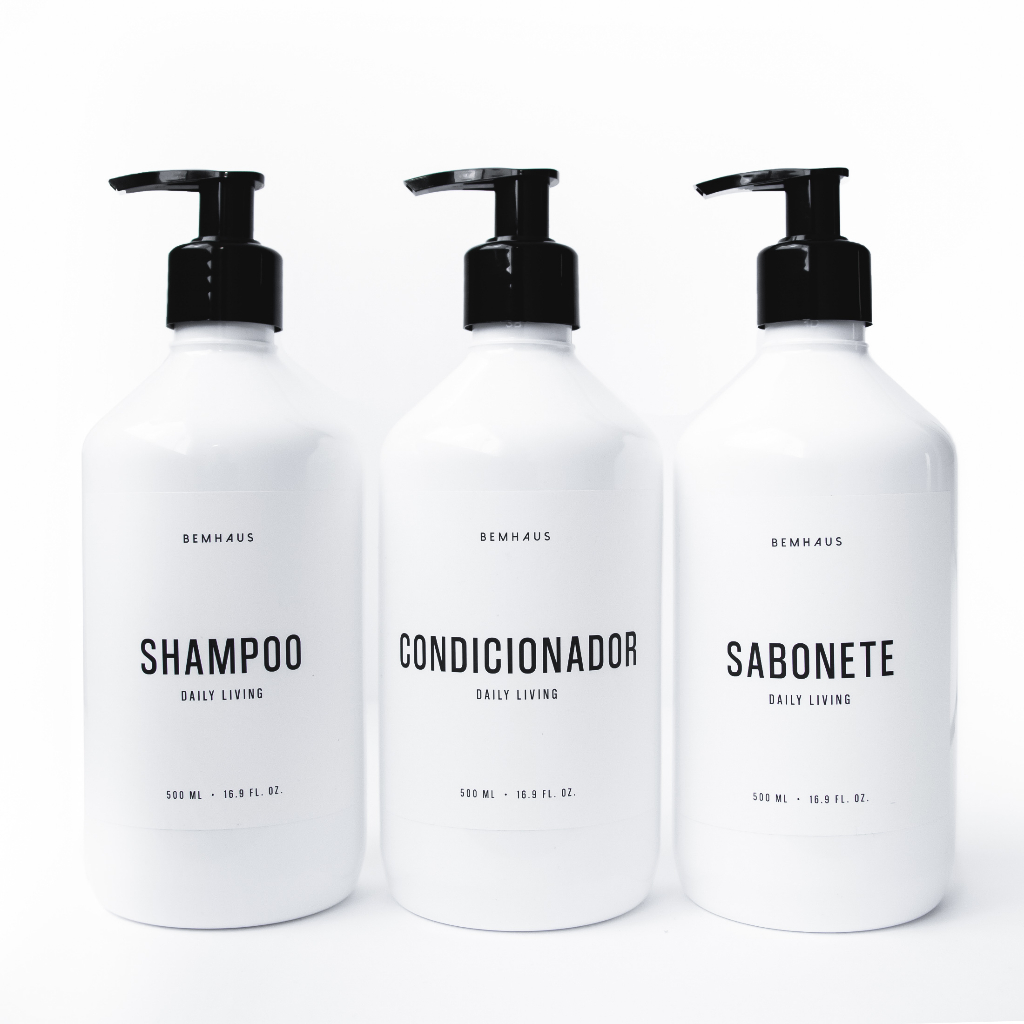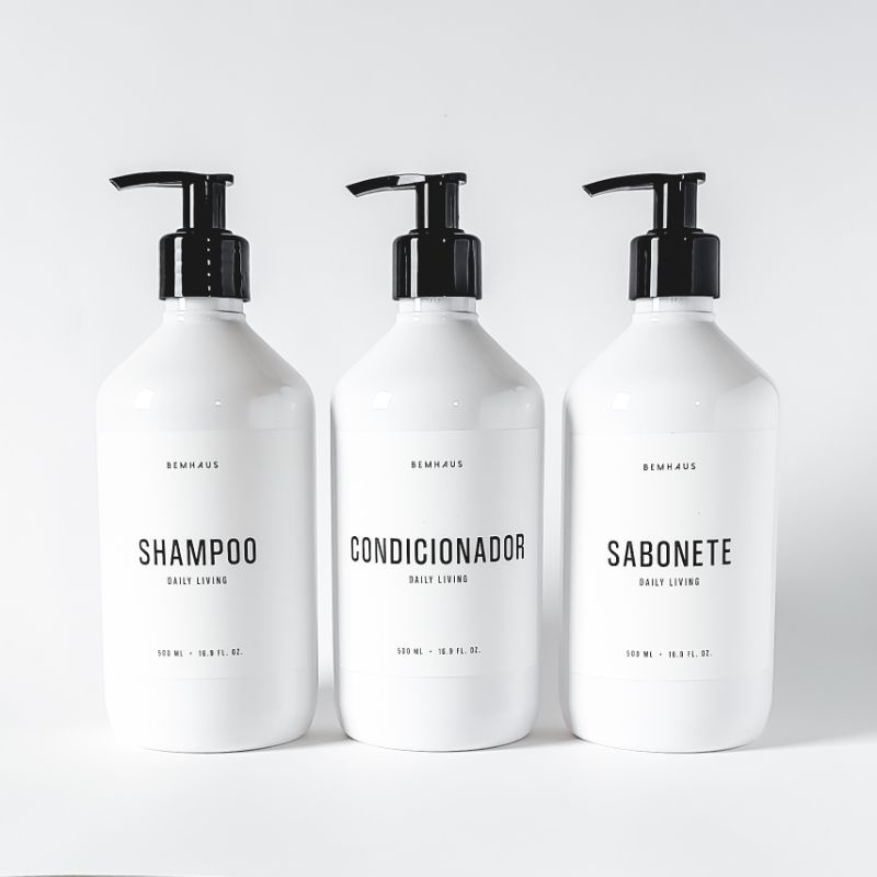 Kit 3 Peças Dispenser Frasco Branco Shampoo Condicionador Sabonete Pet Plástico Bemhaus 500 Ml