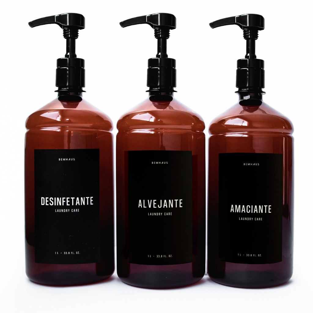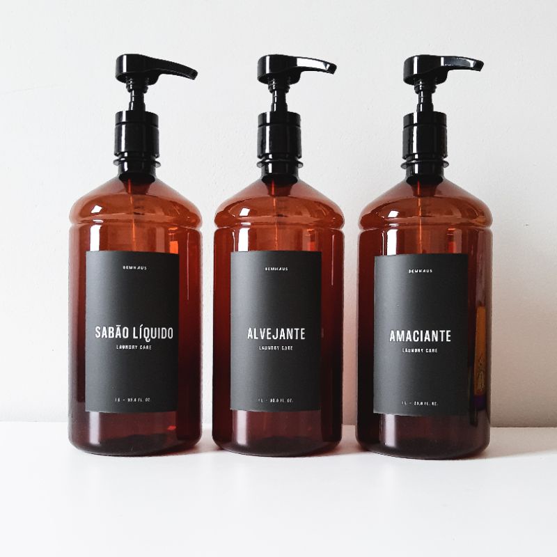 Frasco Ambar 1 Litro Diversos Rótulos Válvula Alta Vazão Bemhaus