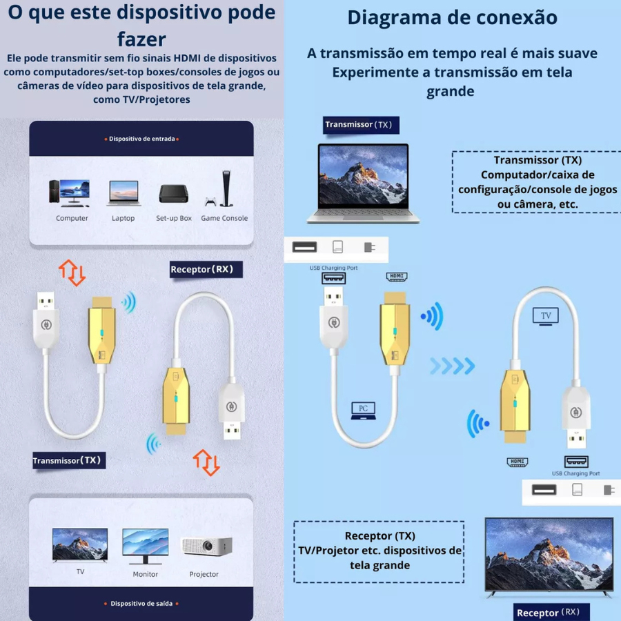Transmissor Receptor De Áudio E Vídeo Hdmi Sem Fio 1080p Usb