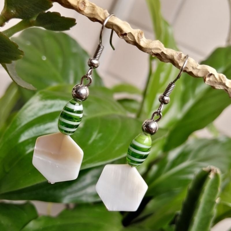 Brinco de pedras naturais +Madrepérola+ Brinco de Cristais +Brincos delicados