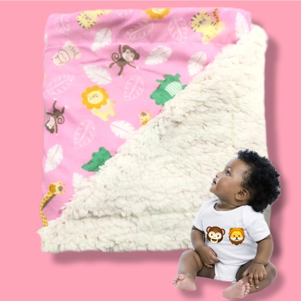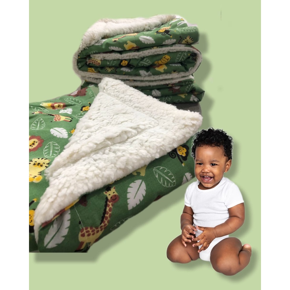 Coberdrom Dupla Face De Bebe Estampado Com Sherpa Manta De Berço Percal 100% Algodão Safari