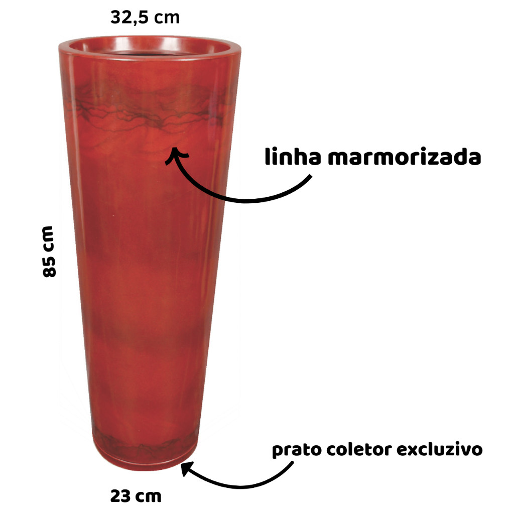 VASO GRANDE 85 CM DE PLANTA MARMORIZADO DECORATIVO PREMIUM COM PRATO LUXO CASA JARDIM