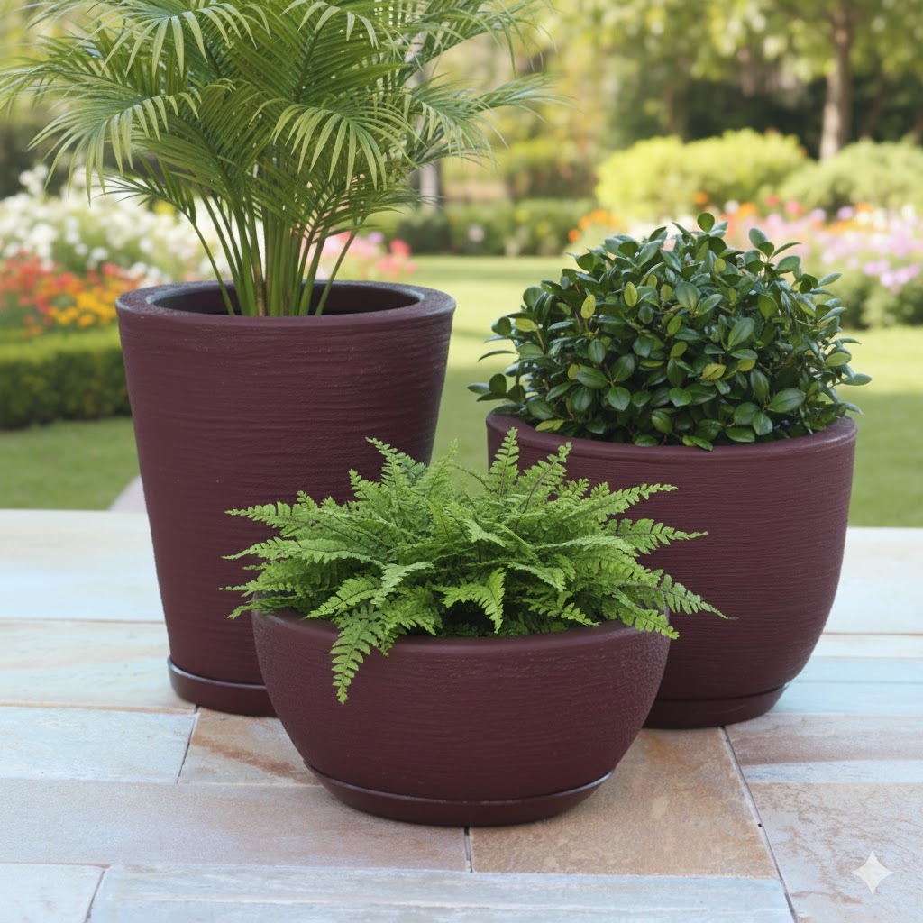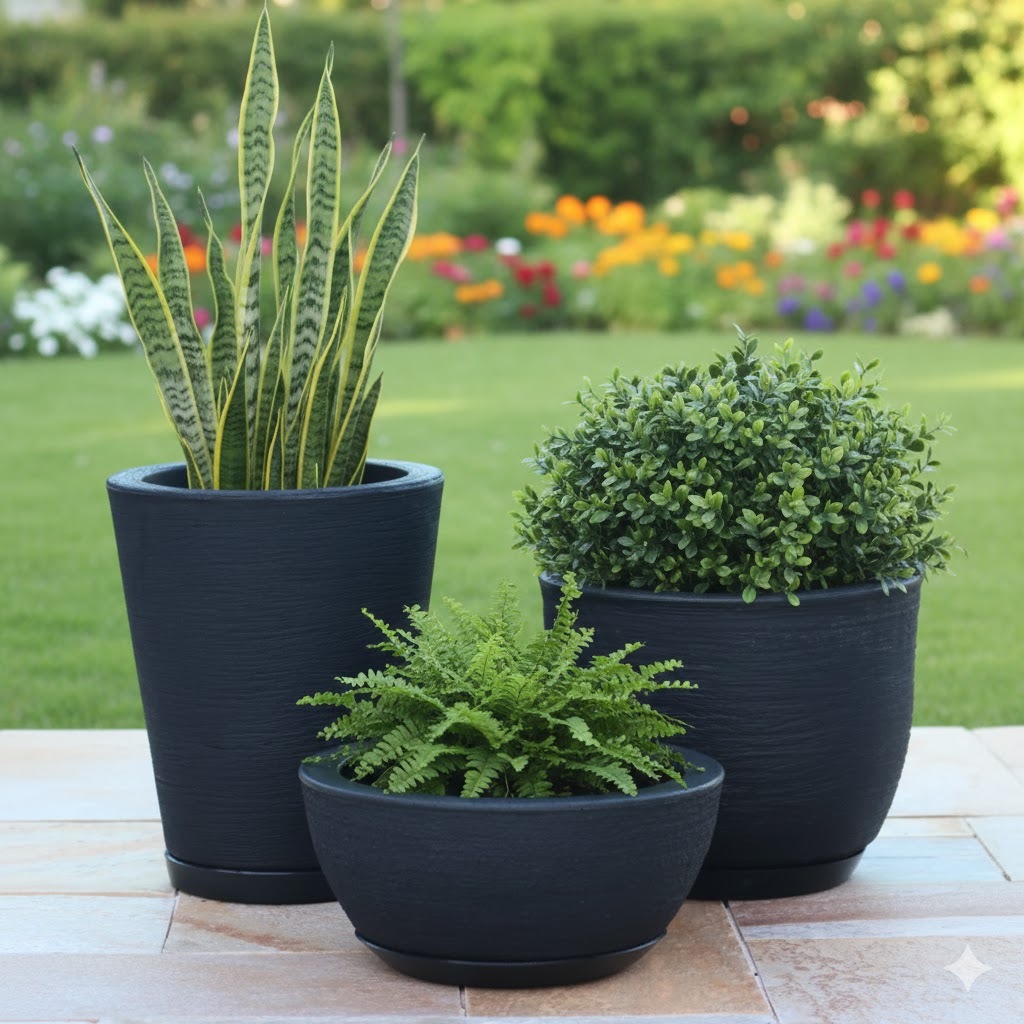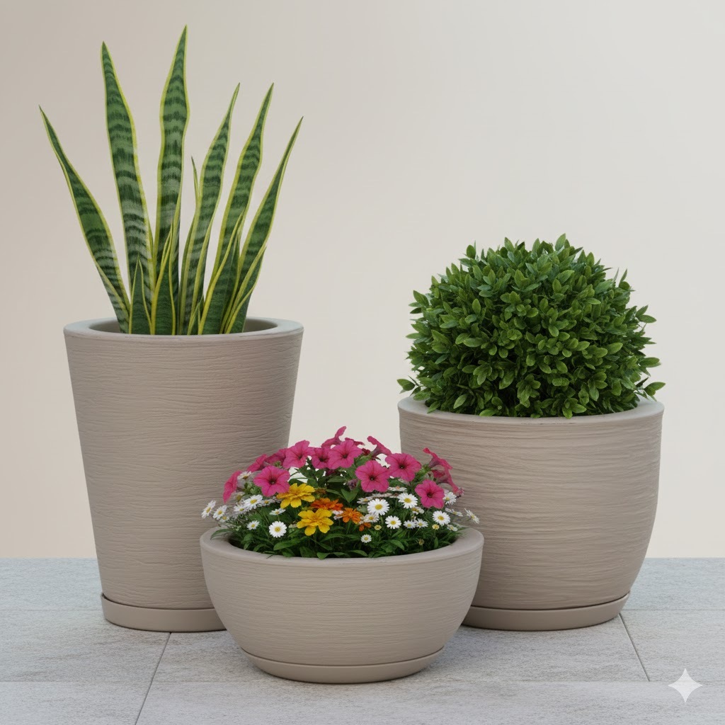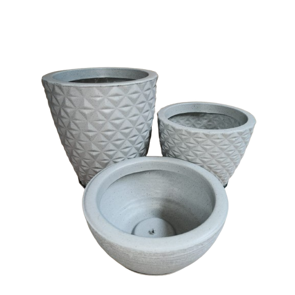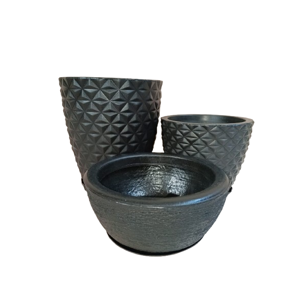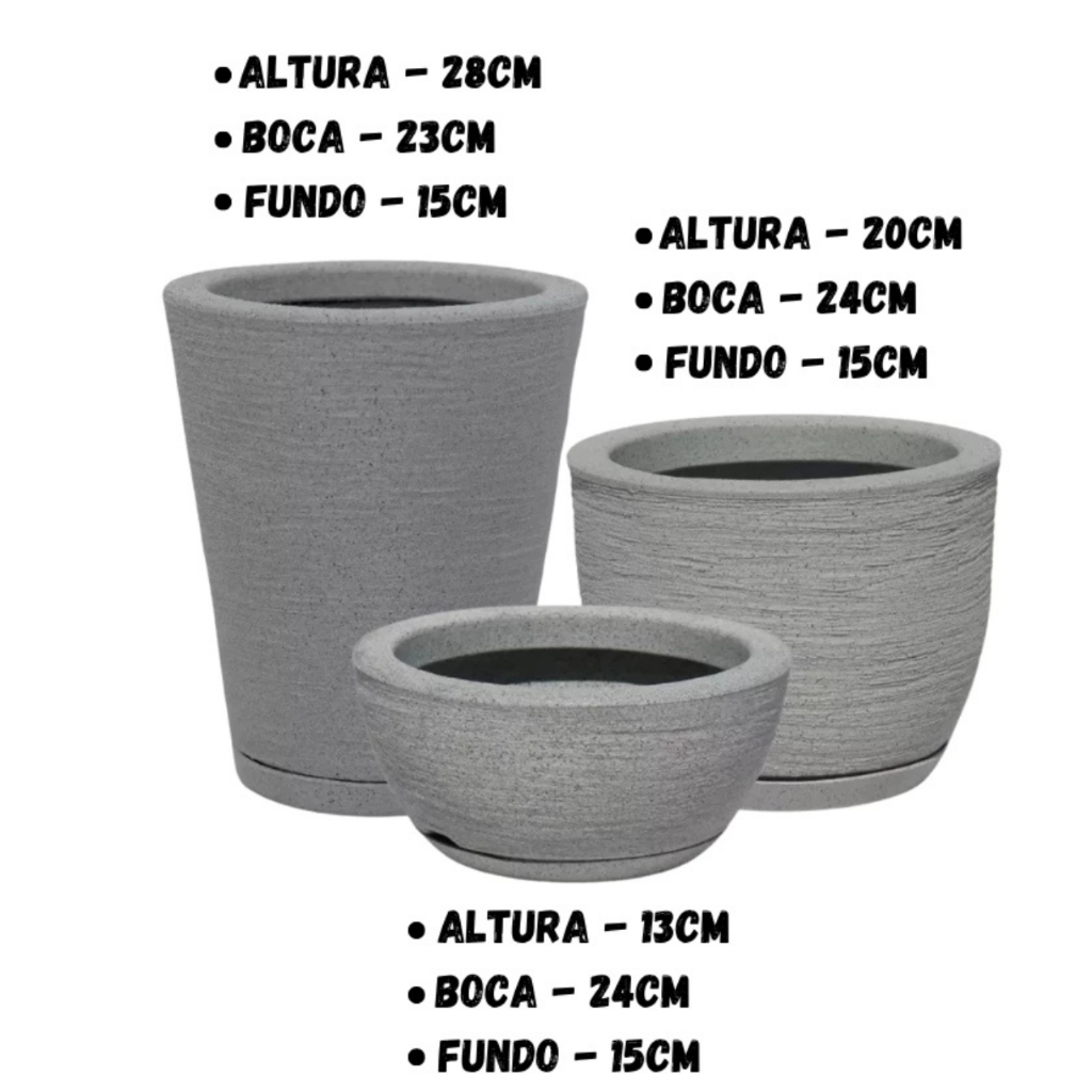 Kit 3 Vasos decorativo Bojo Diamante 3D Bacia Escovada Para Plantas Jardim Casa com prato coletor