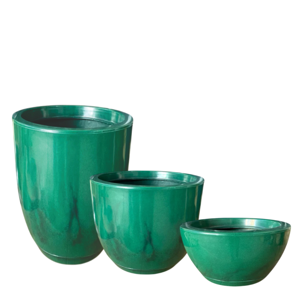 Kit 3 Vasos Para Plantas Polietileno Decorativo Liso Polido COLUNA 1 bojo 1 bacia1 com prato coleto
