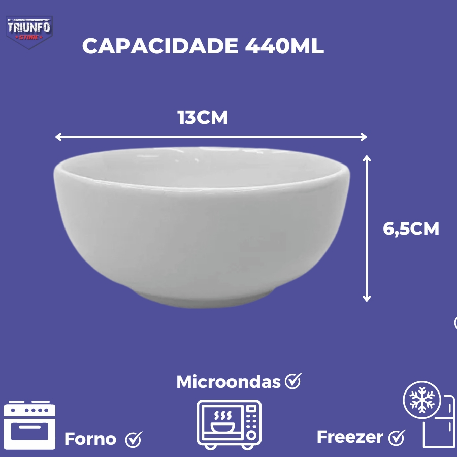 Conjunto 6 Tigelas Bowl Cumbuca Porcelana Branca Lisa Refratario Resistente Para Servir Sopa Saladas