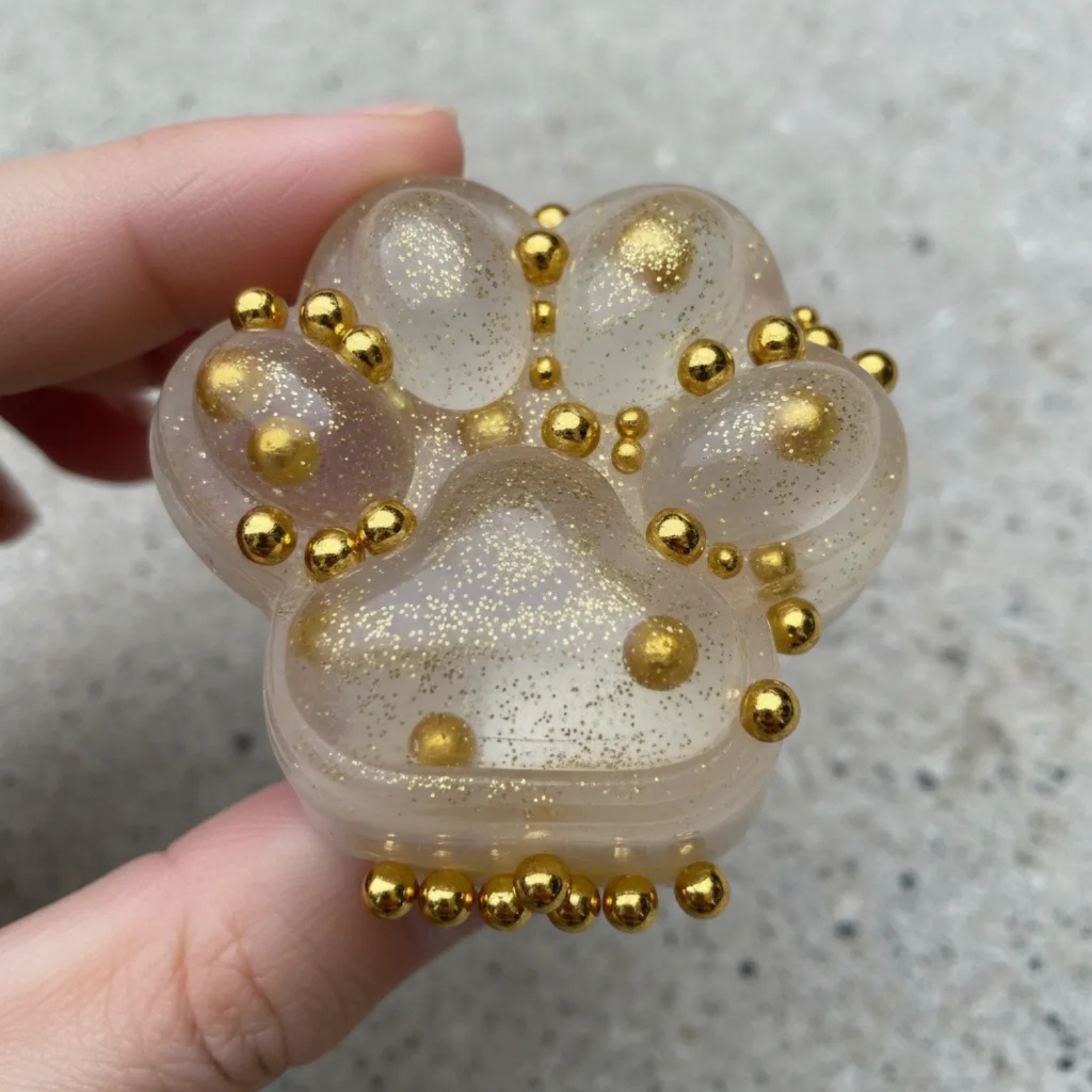 Patinha Gato Squishy Brinquedo Transparente Glitter Dourado Fidget Antistress Taba Squishi Apertar
