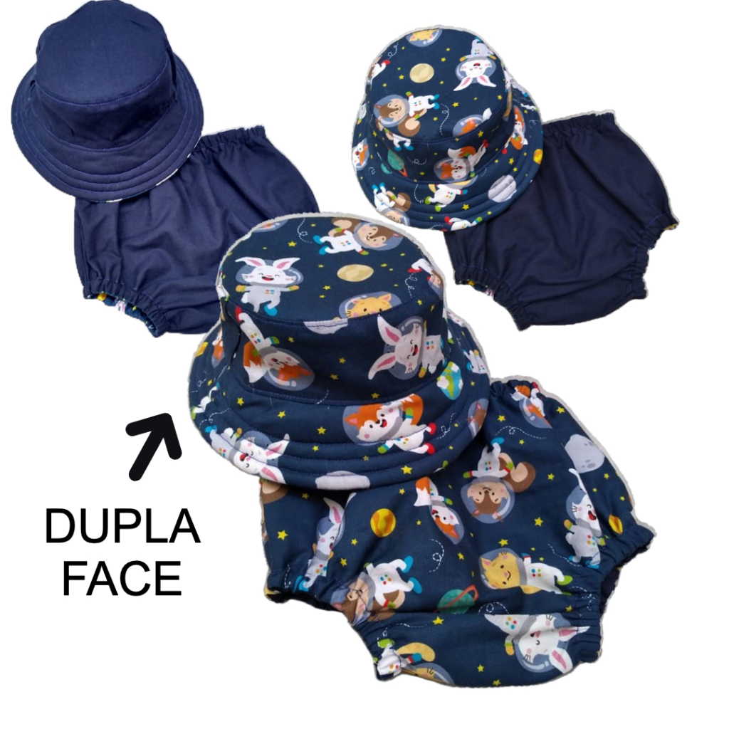 Kit para Proteção Solar + Tapa Fralda + Chapéu Bebê e Infantil Menino Menina - Infantil Verão