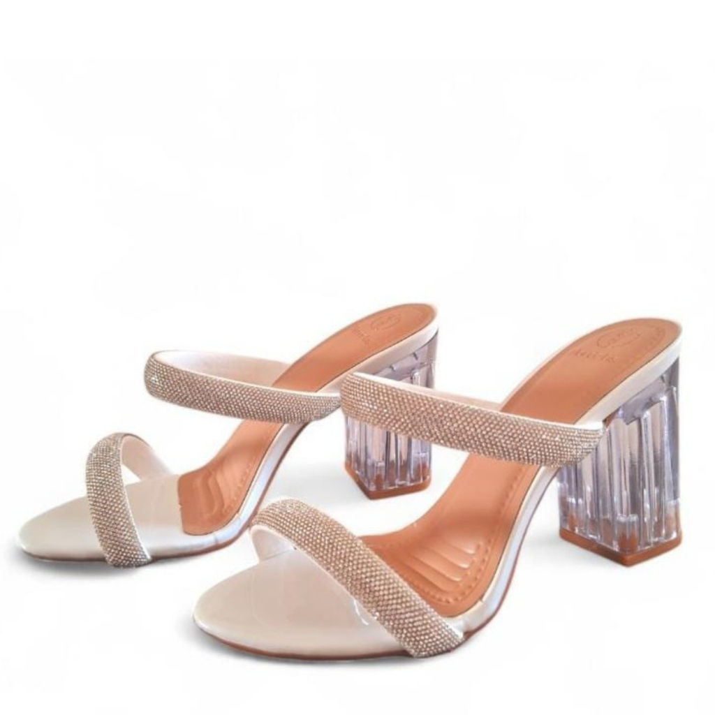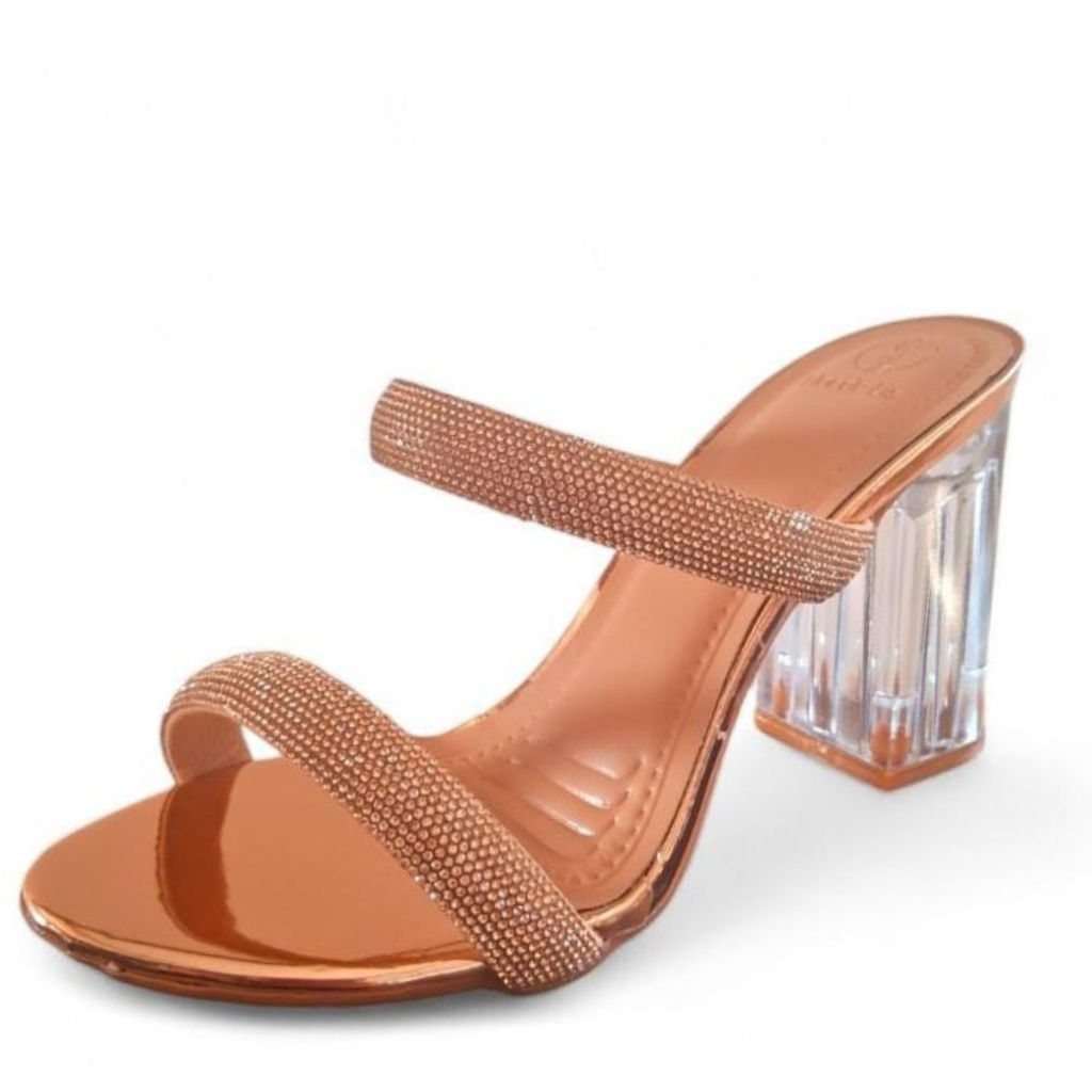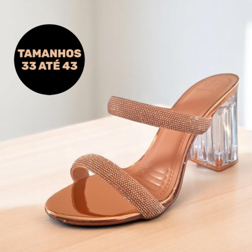 Salto Feminino Sandália Tamanco Bloco Acrílico Brilho Estilo Blogueira