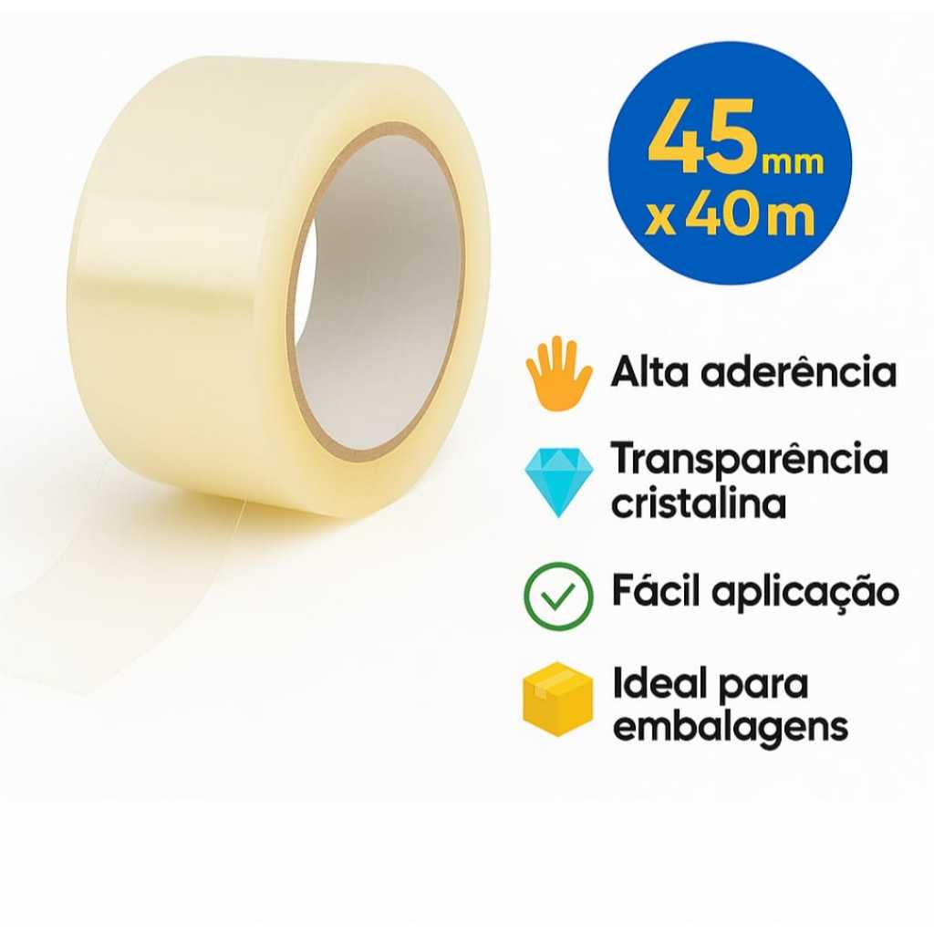 Kit Durex Largo Transparente 45mm x 40m Larga Fita Adesiva Embalagens Caixas Kit e Unidades