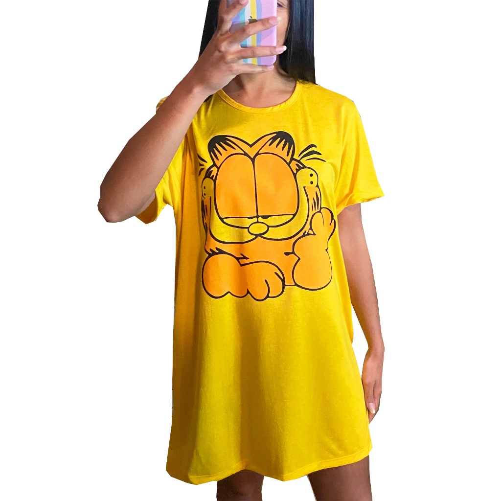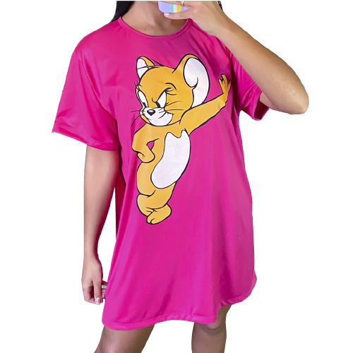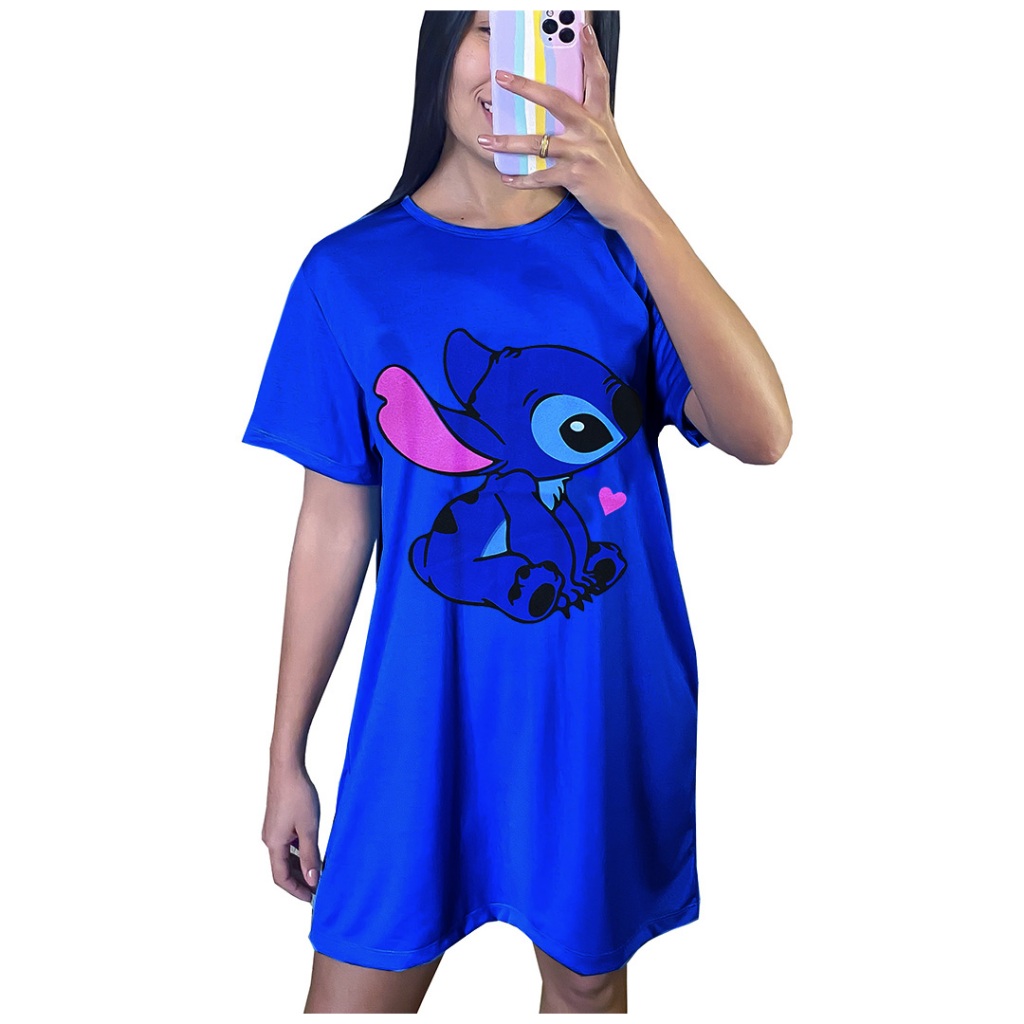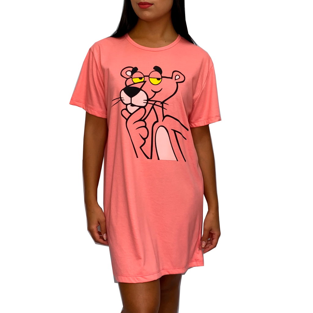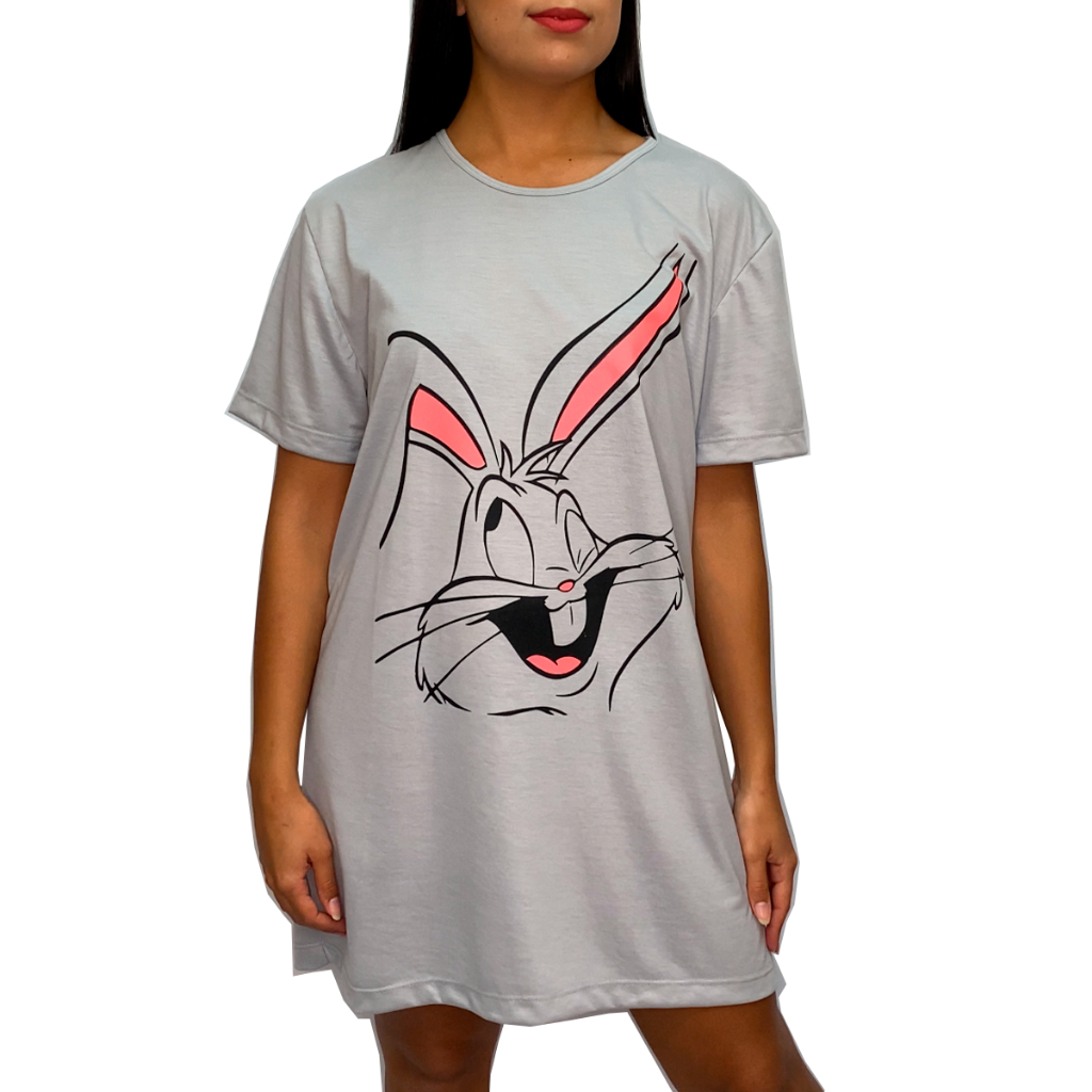 Camisola Camisão de Personagem Feminino Desenhos Divertidos Manga Curta Adulto em Malha