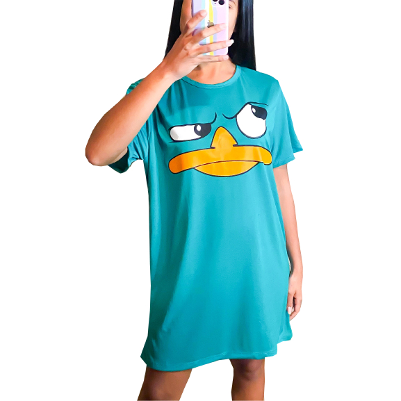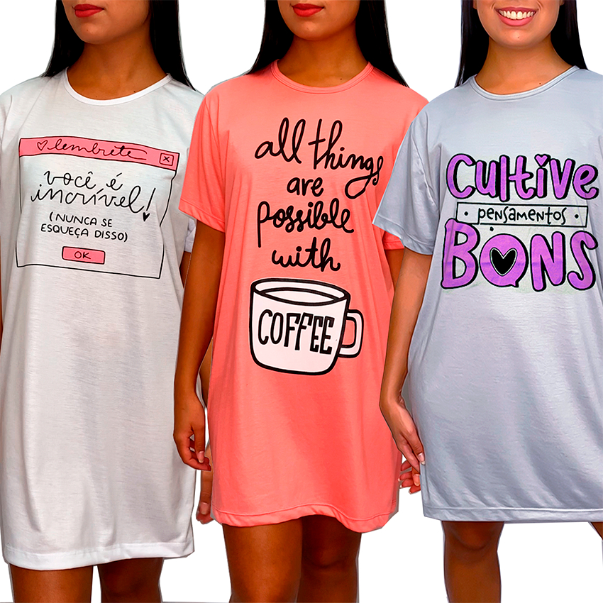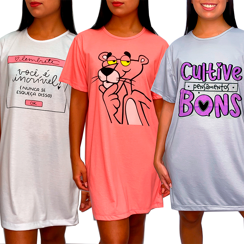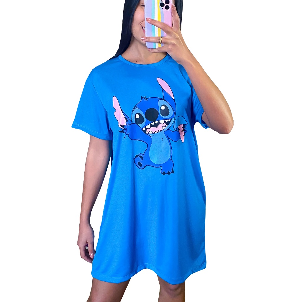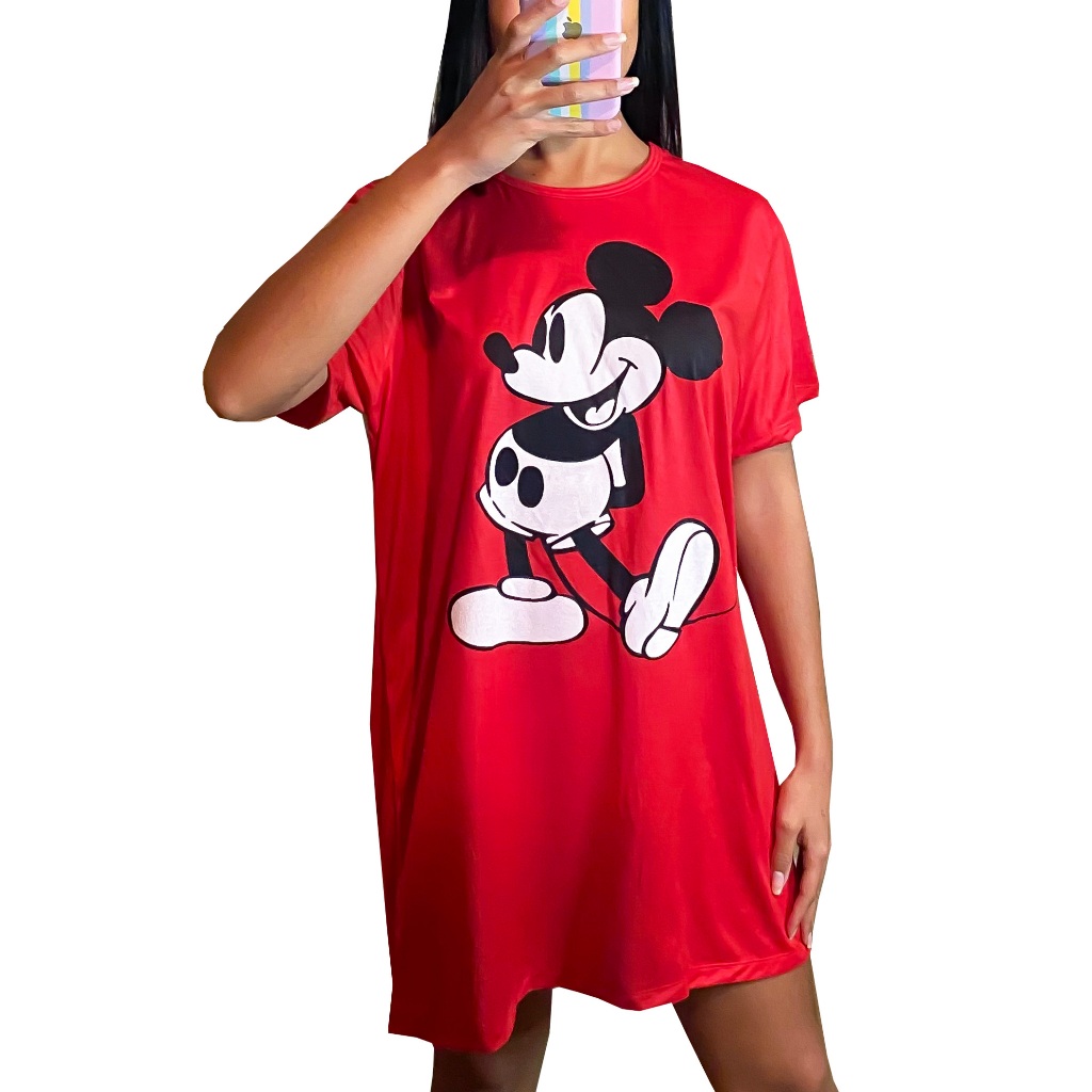 Camisola Camisão de Personagem Feminino Desenhos Divertidos Manga Curta Adulto em Malha