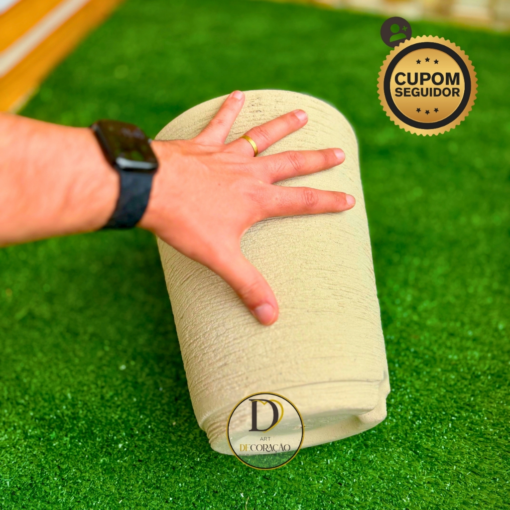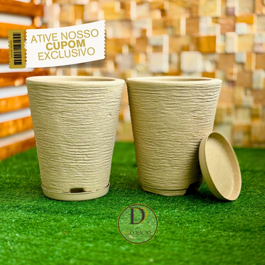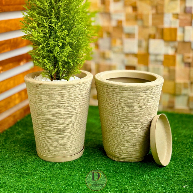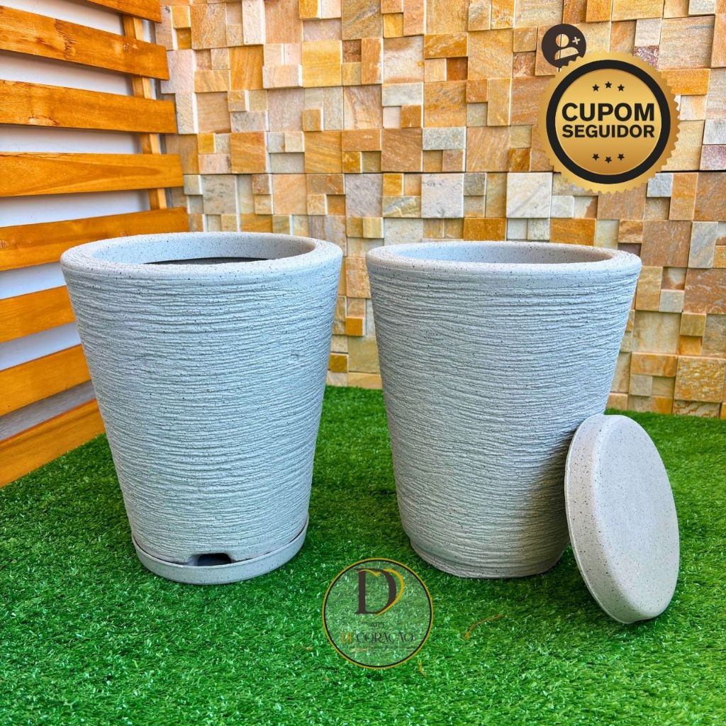Kit 2 Vasos de Planta Decorativo em Polietileno Coluna Redonda Cone Escovado com Prato