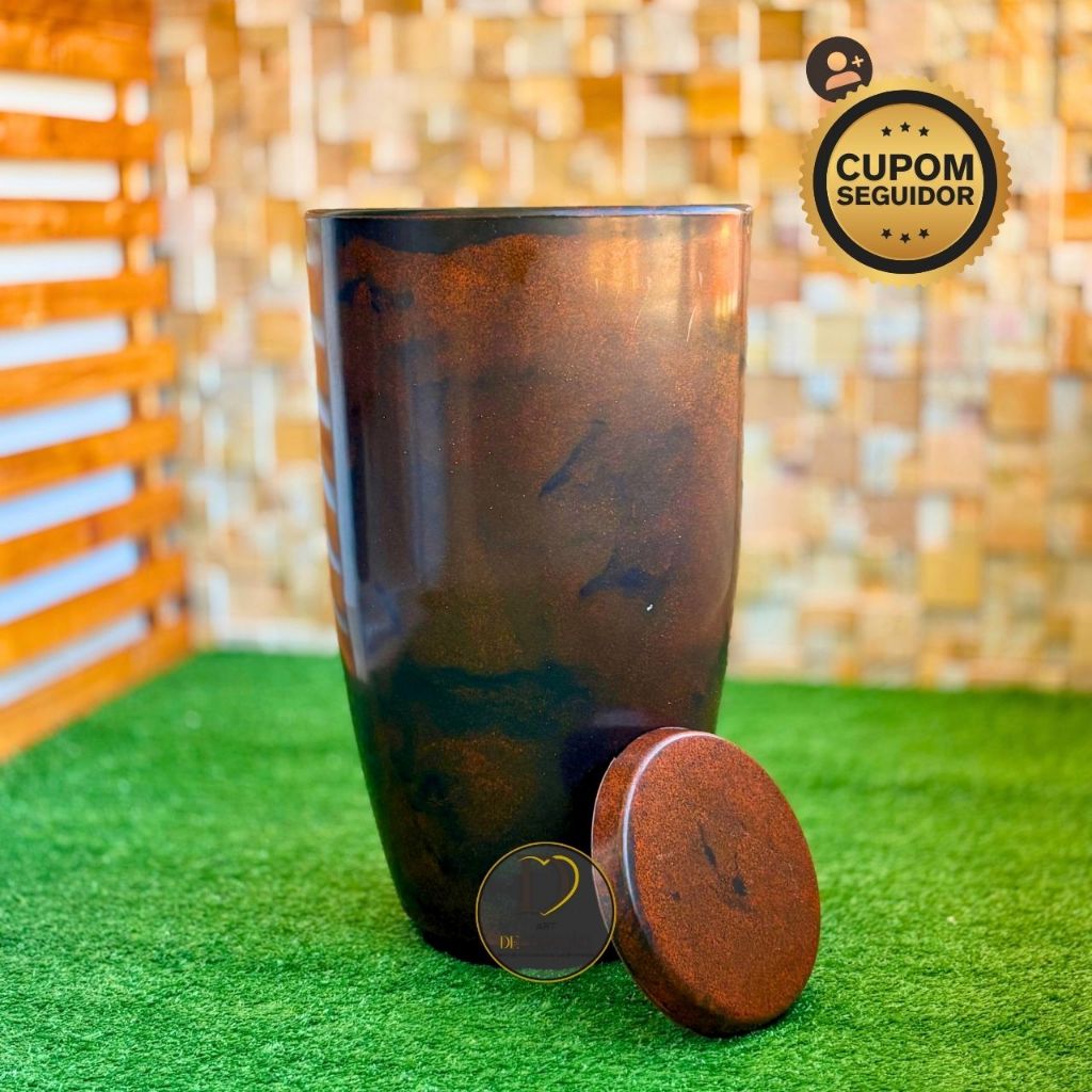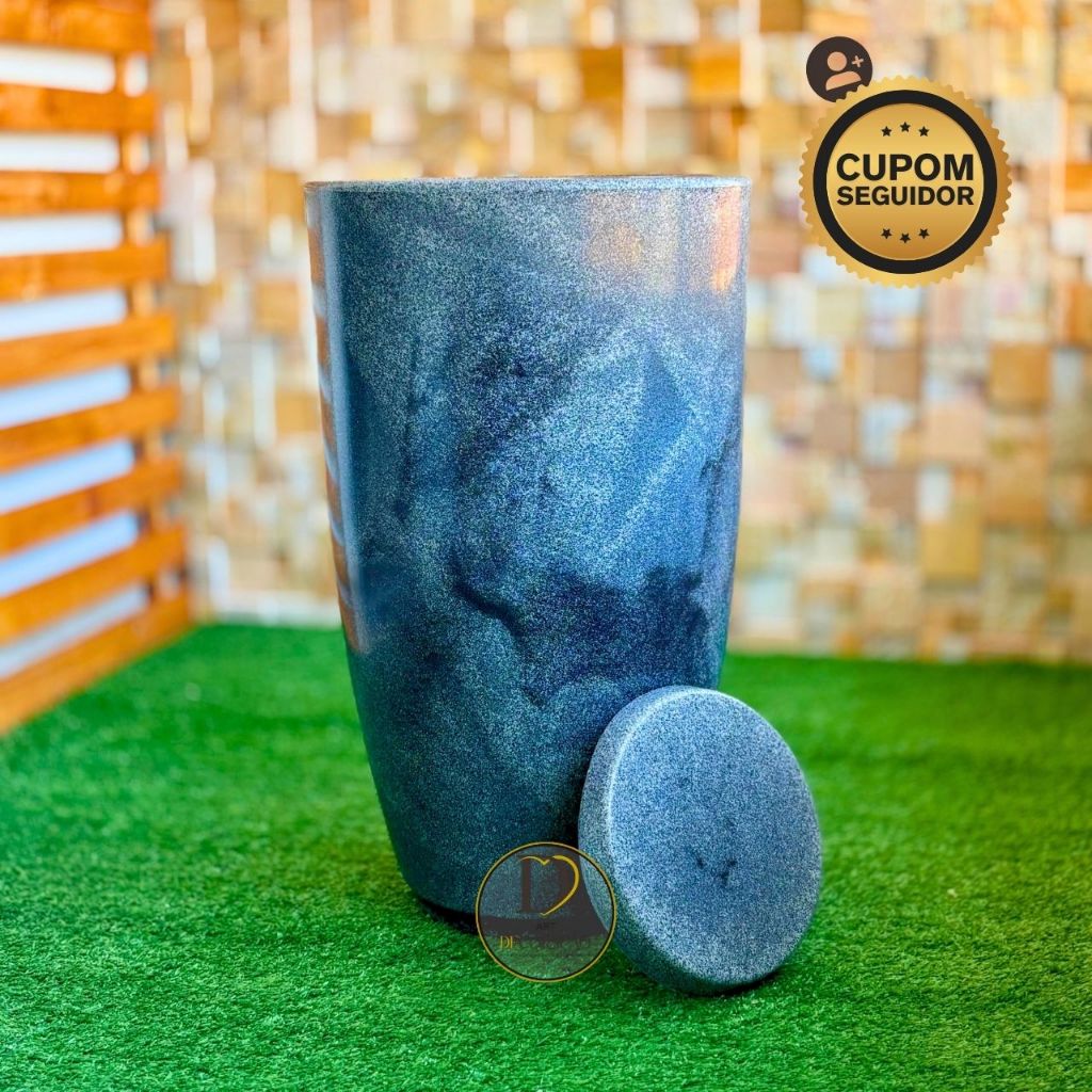 Vaso de Planta Grande Ibiza P Marmorizado 50cm c/ Prato Polietileno Premium Jardim, Sala, Varanda
