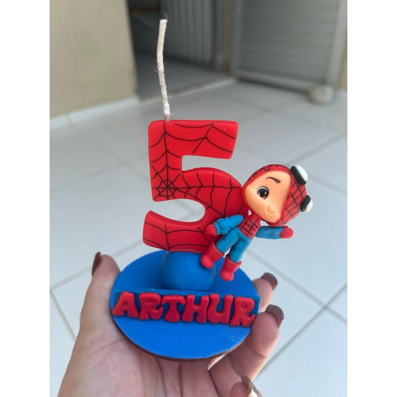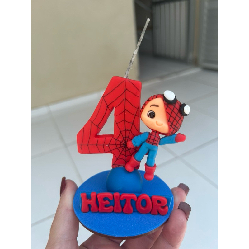 Vela de Aniversário Homem Aranha Menino Personalizada com Nome em Biscuit