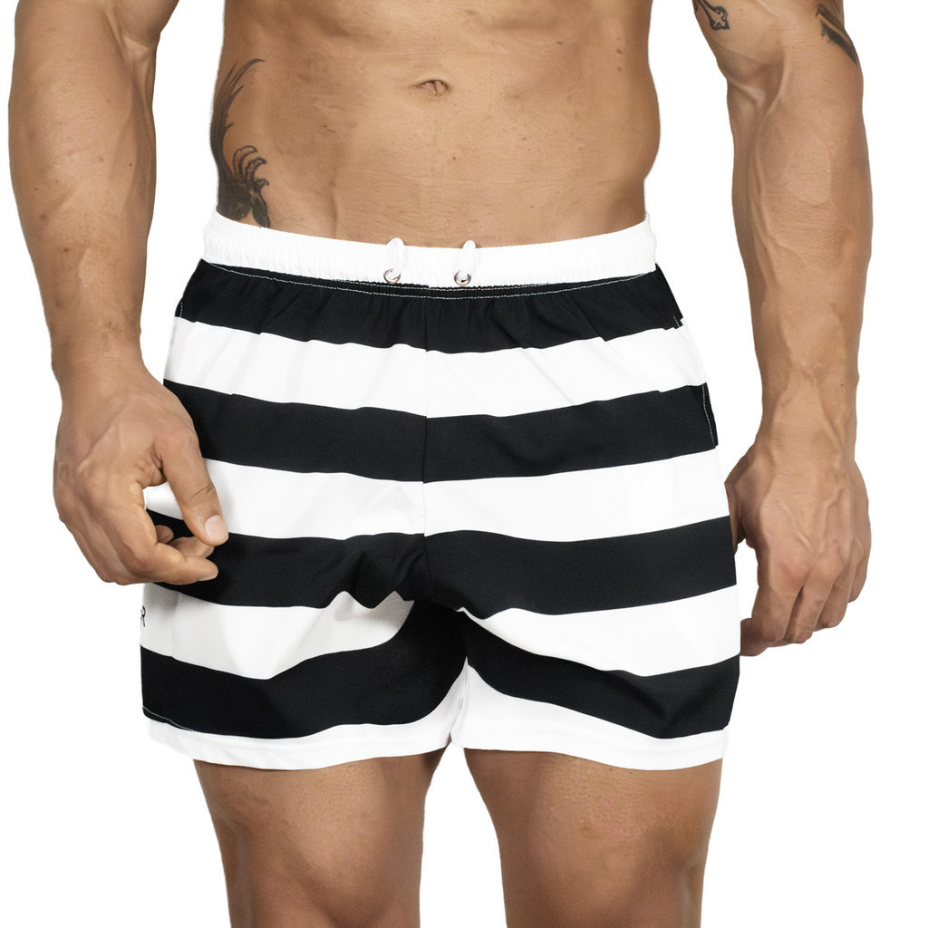 Short Masculino Bermuda Mauricinho Moda Praia Verão Com Bolso Listras Preta