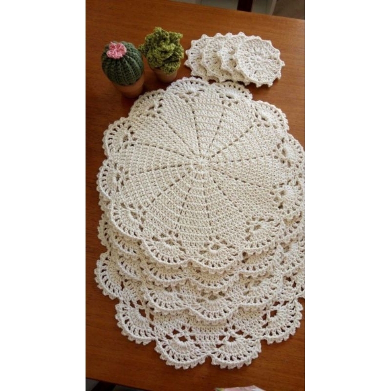 Toalhinha / americano/Sousplat de Crochê feito à mão – 40 cm kits com 2 /4/ 6 /8 unidades