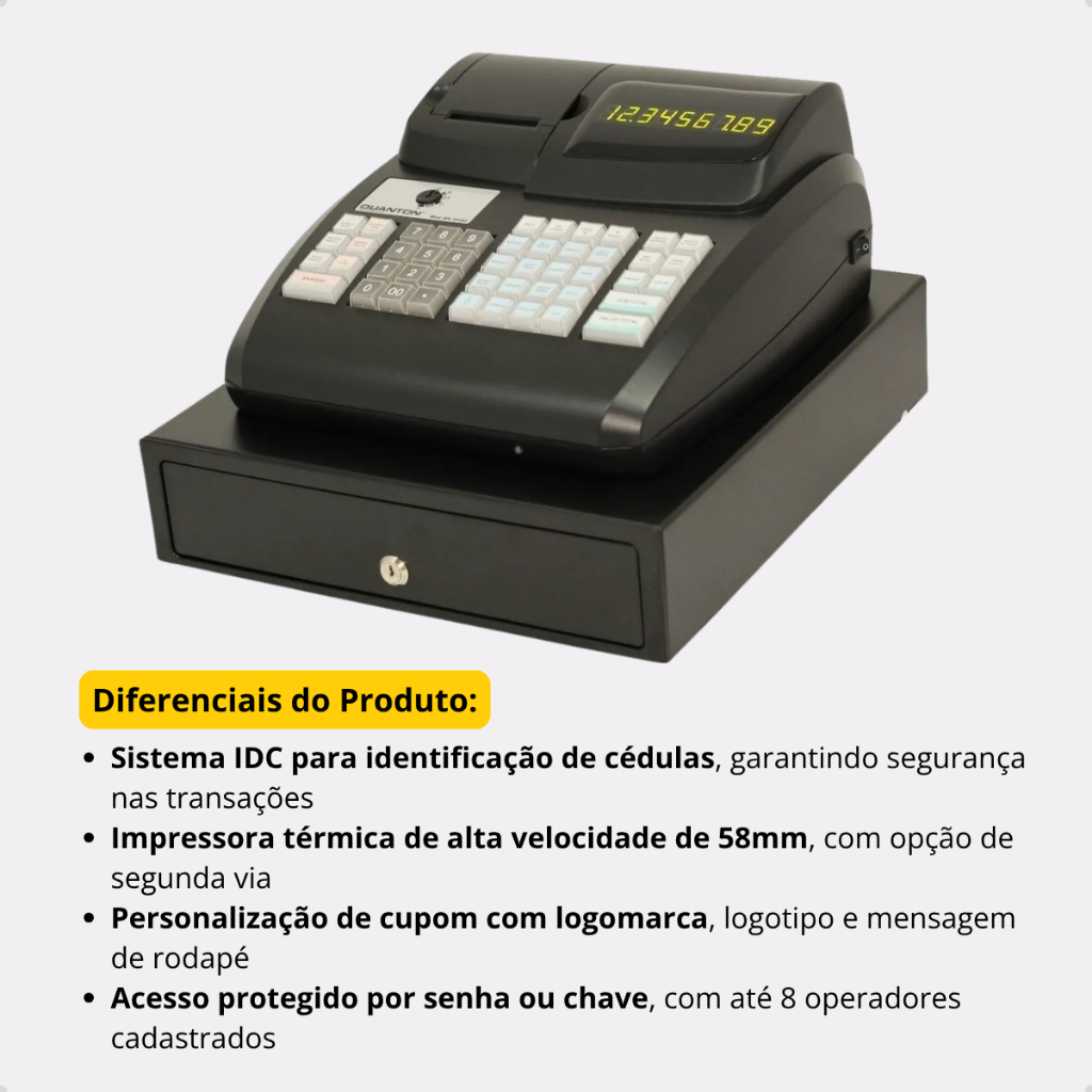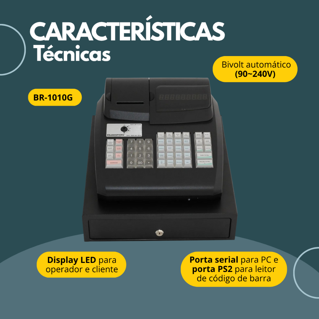 Caixa Registradora Quanton BR-1010G Bivolt com Impressora Térmica Controle de Vendas Comercial