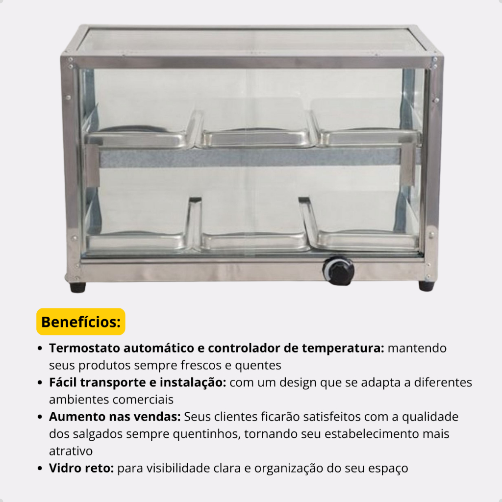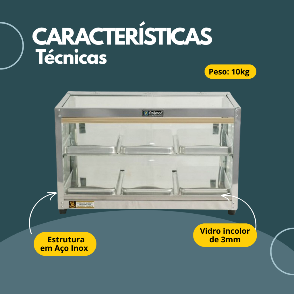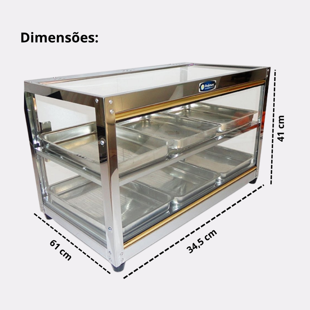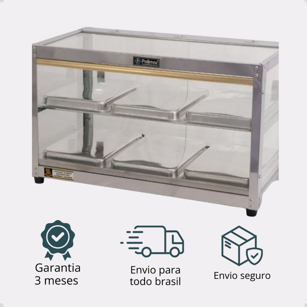 Estufa Polimac 6 Bandejas Vidro Reto Dupla para Salgados 220V Aço Inox Para Padarias Restaurantes