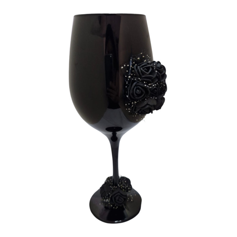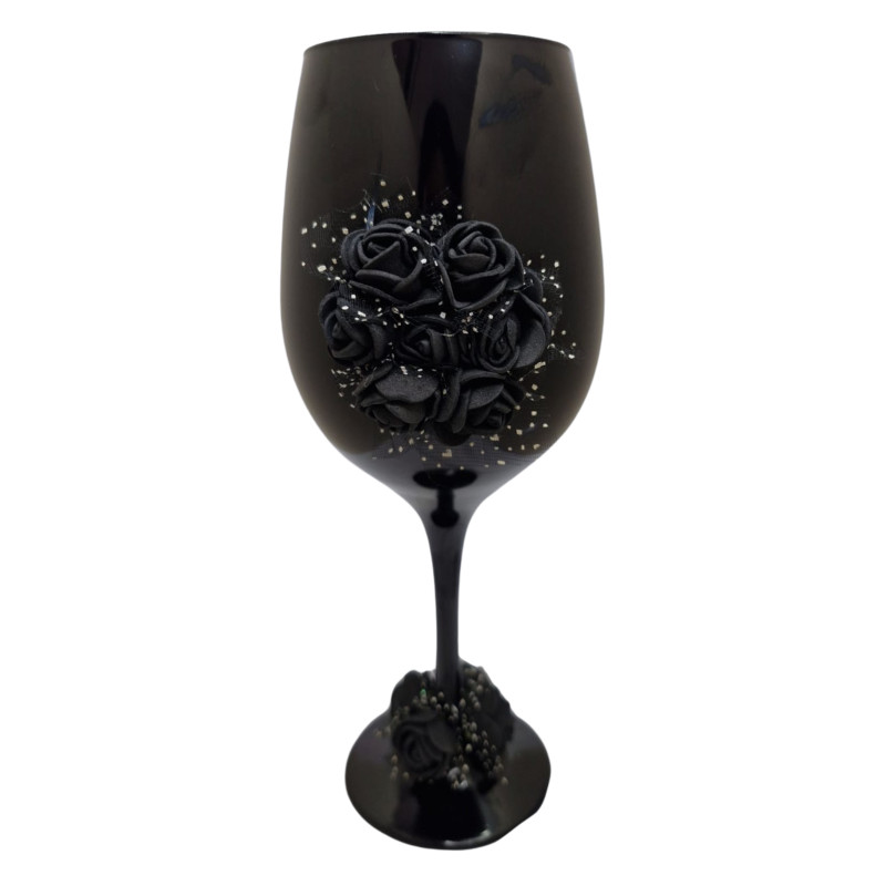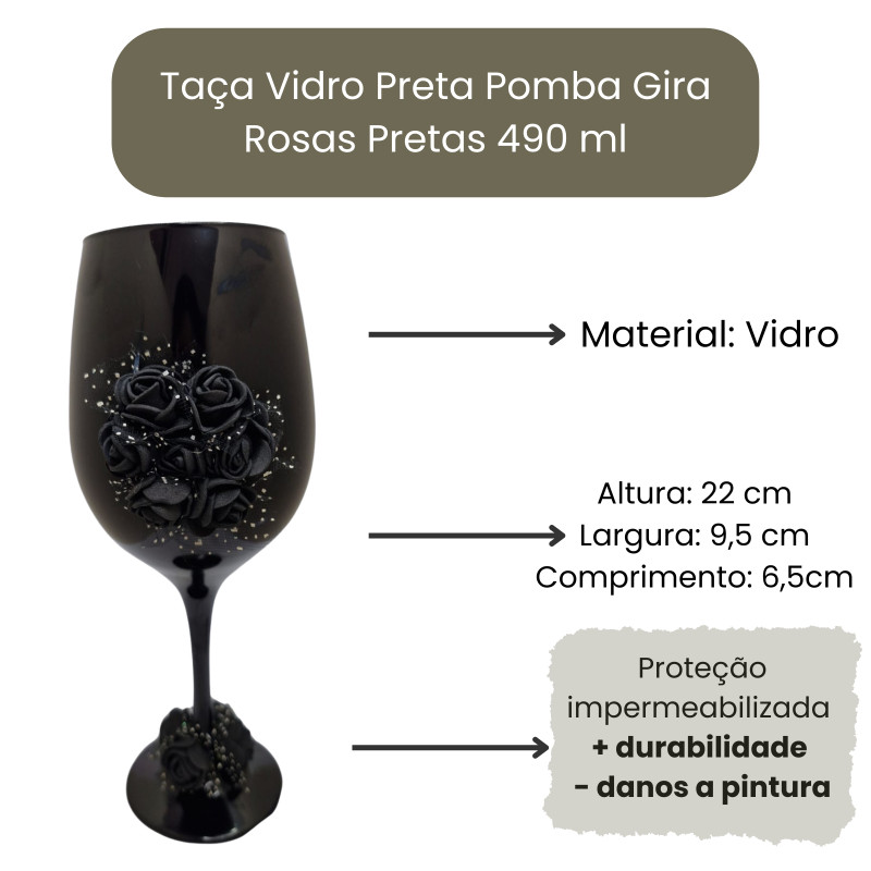 Taça Vidro Preta Pomba Gira Rosas Pretas 490 ml