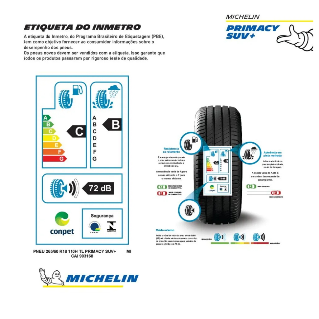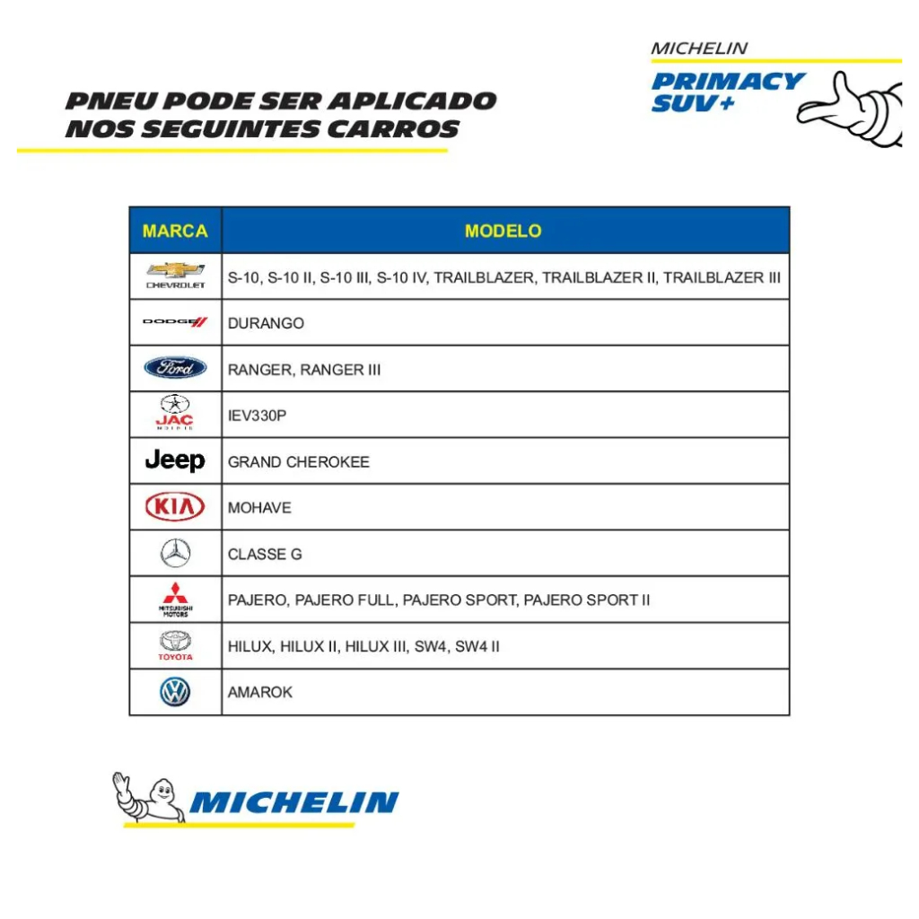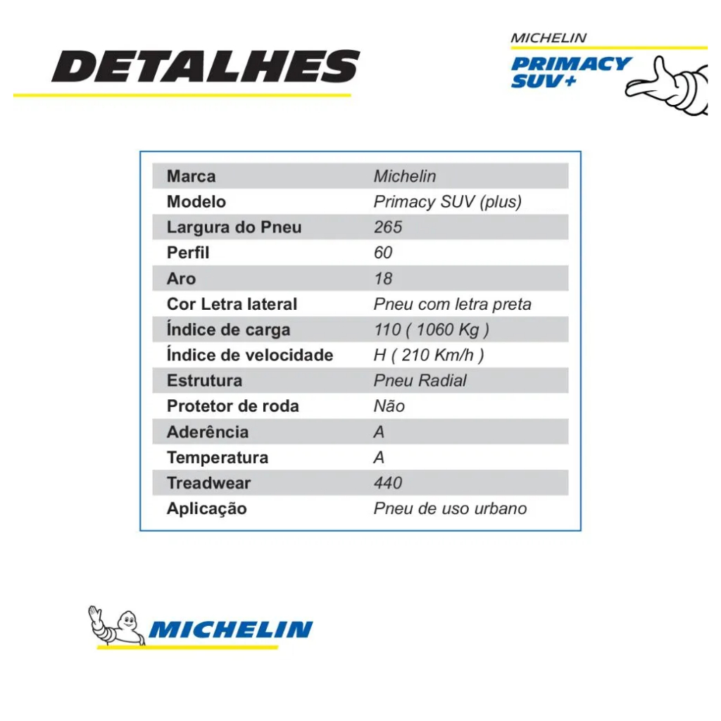 Pneu Michelin 265/60r18 110h Primacy Suv+ Aro 18