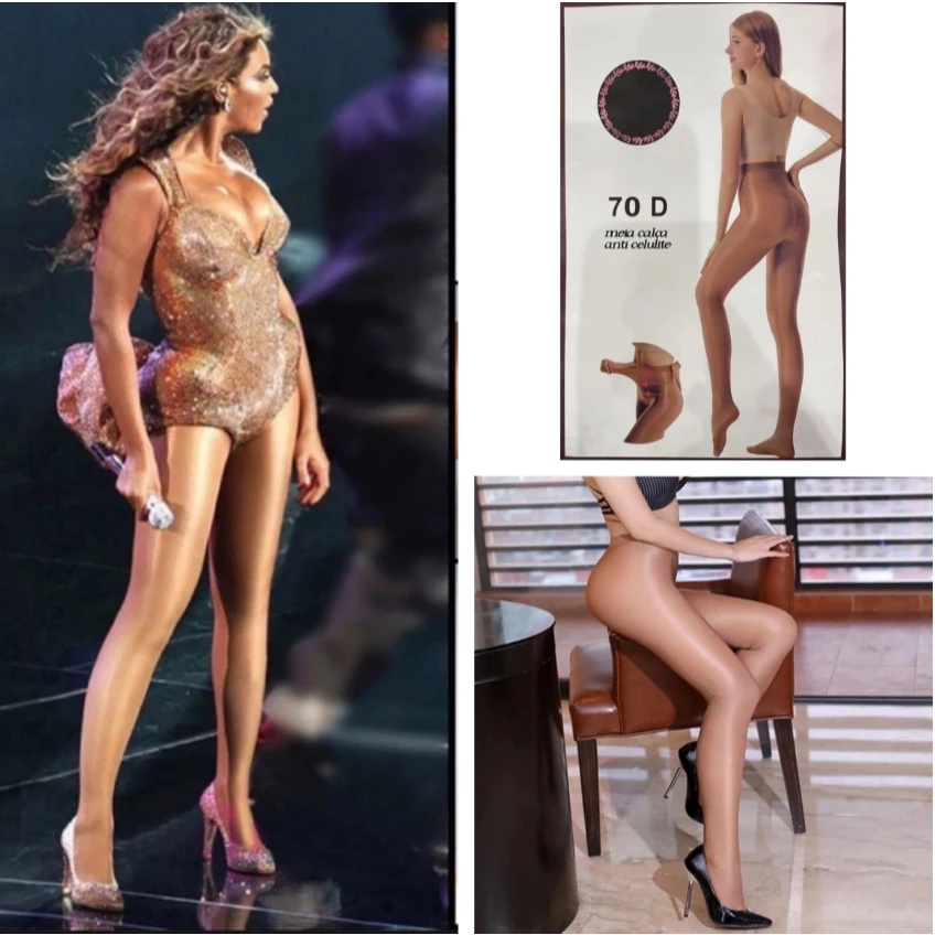 70d - 80D Meias Femininas De Cetim Brilhante Em 2 Cores Meia calça 2024 Cor Preto - Cafe Brilhantes