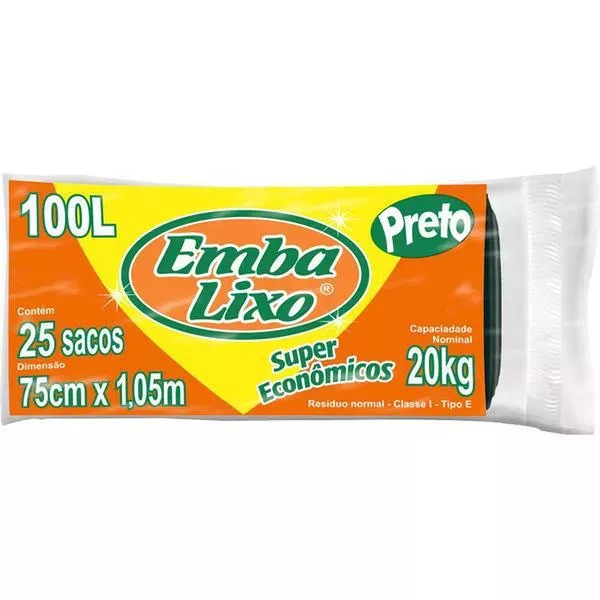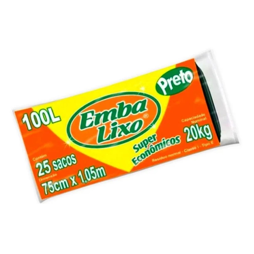 Saco de lixo Super econômico de 100 litros - Para 20kg C/25 un - Embalixo