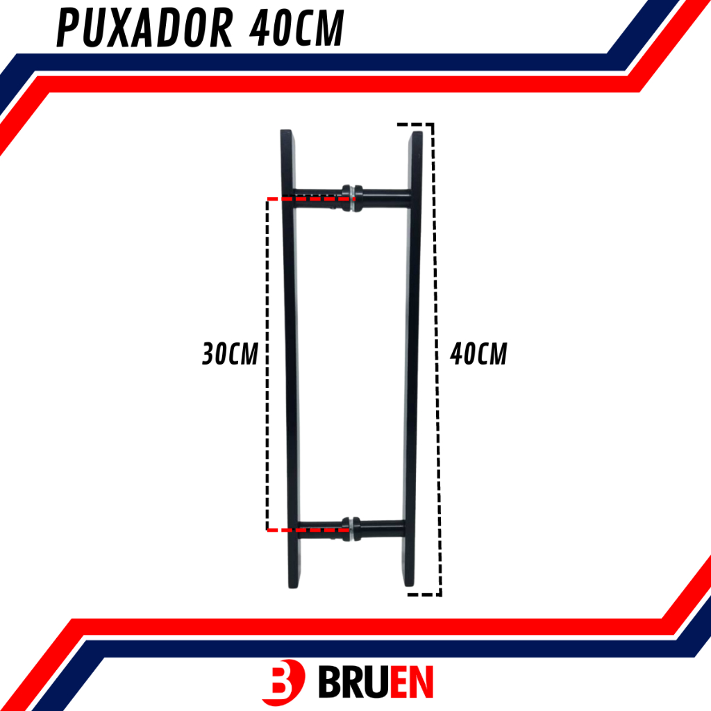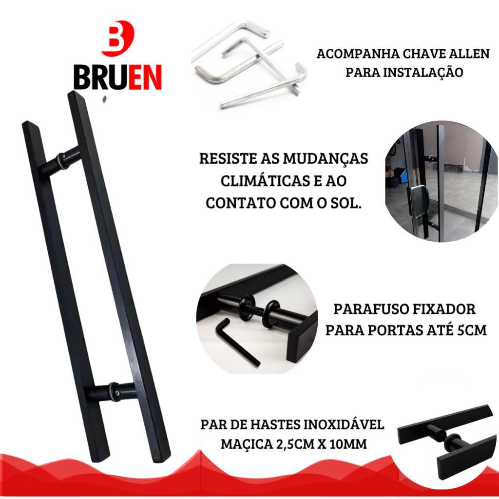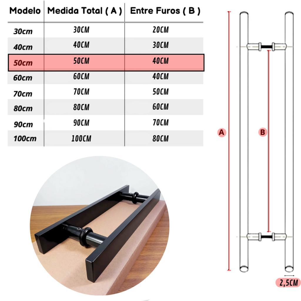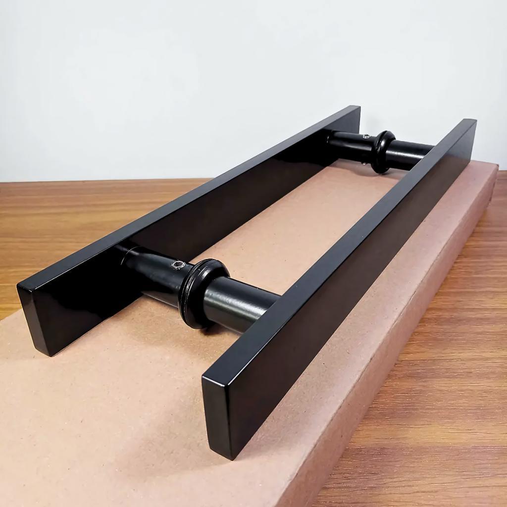 Puxador Inoxidável Duplo Quadrado Preto Fosco Para Portas Madeira e Vidro (30cm; 40cm; 50cm; 60cm)