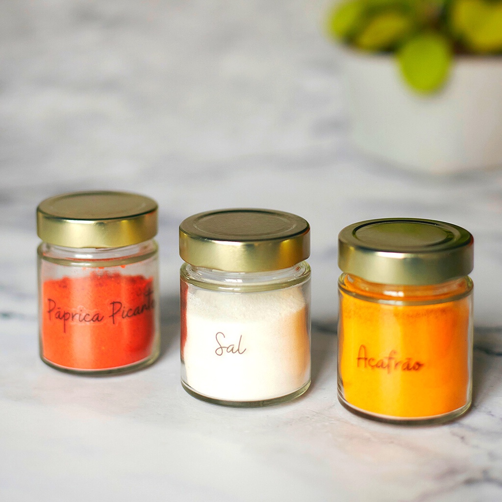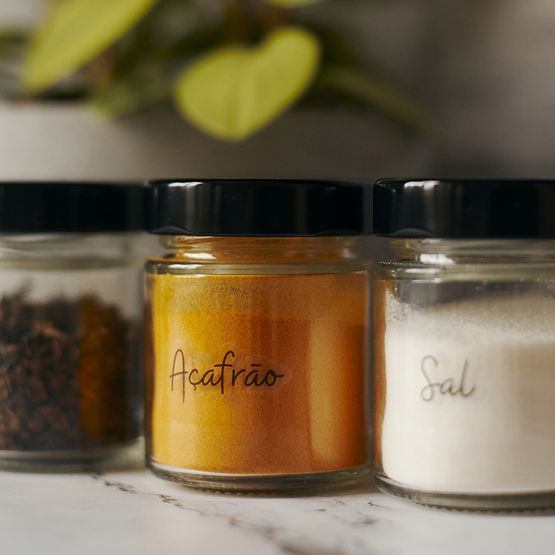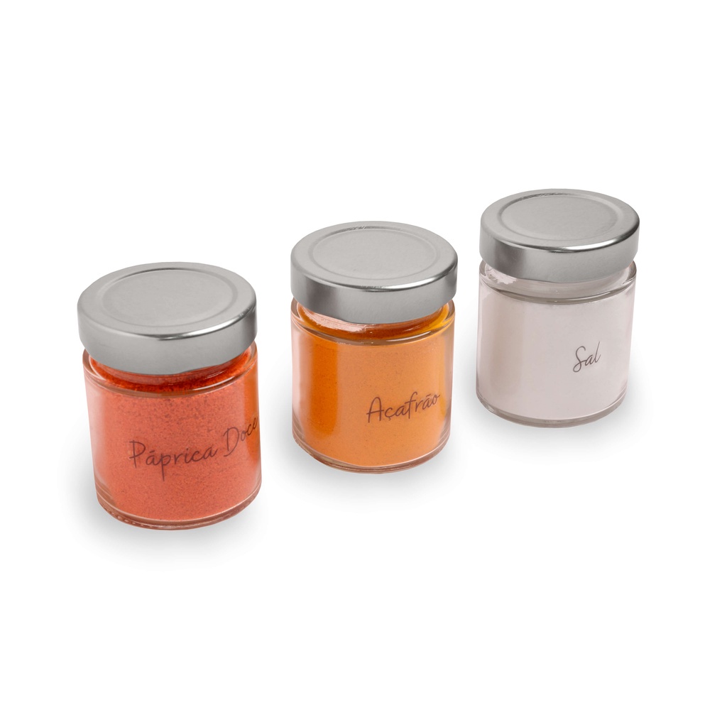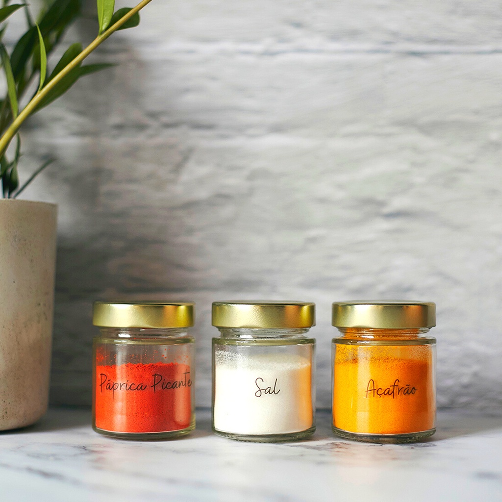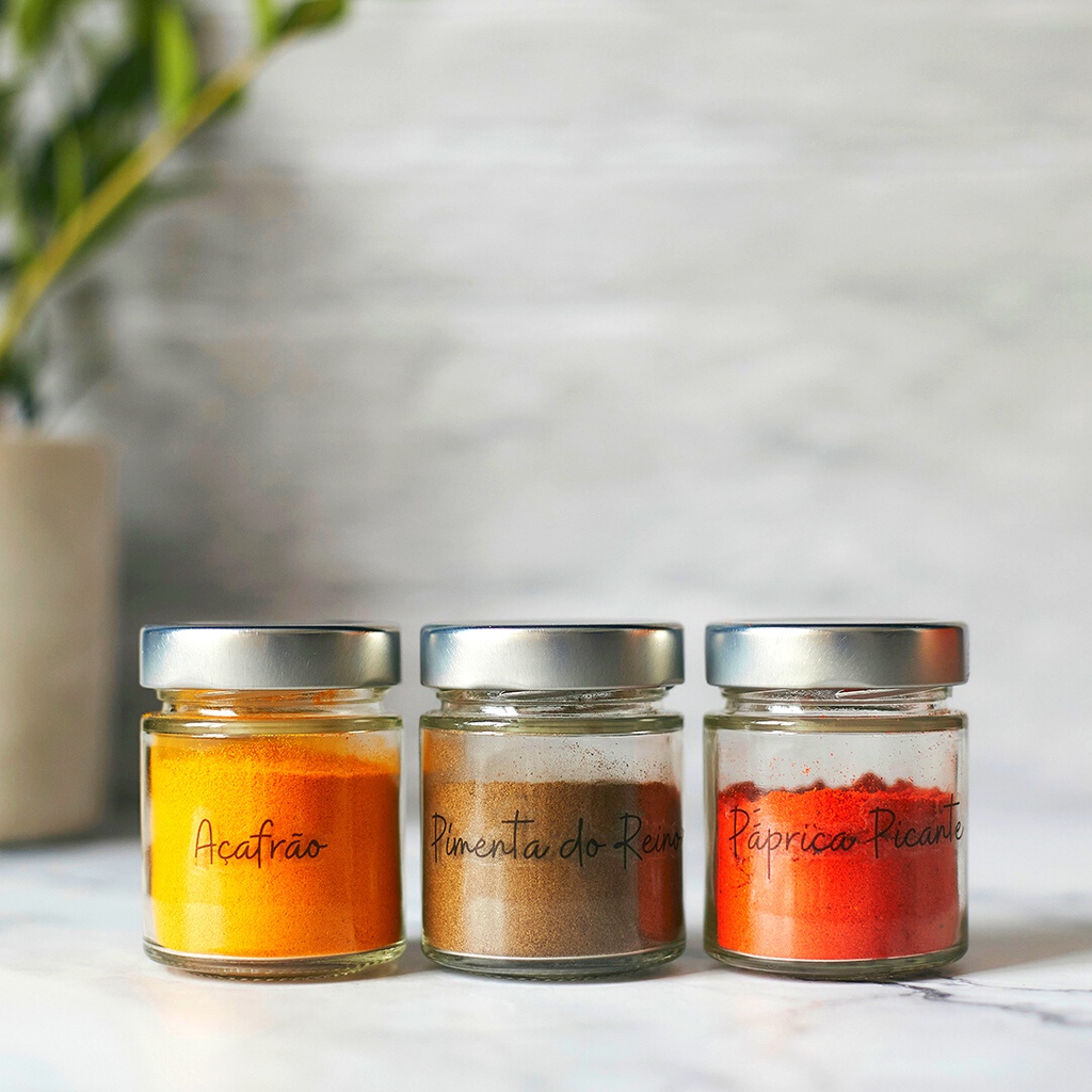 Kit Porta Temperos 6 potes de vidro com 32 Adesivos de Temperos