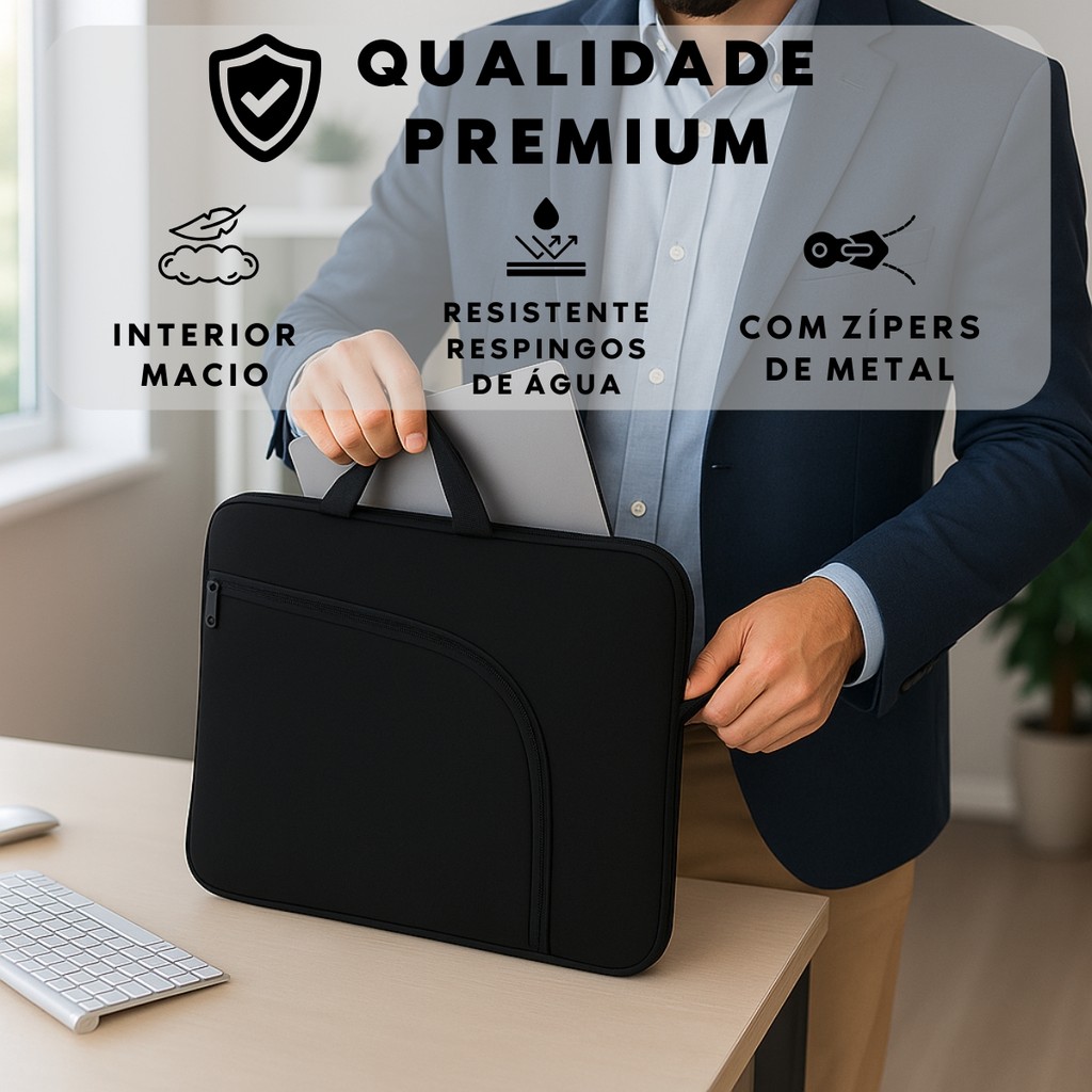 Maleta de Notebook Case 14" 15,6" 17" Alça Dupla Resistente a Respingos de Água Zíperes de Metal