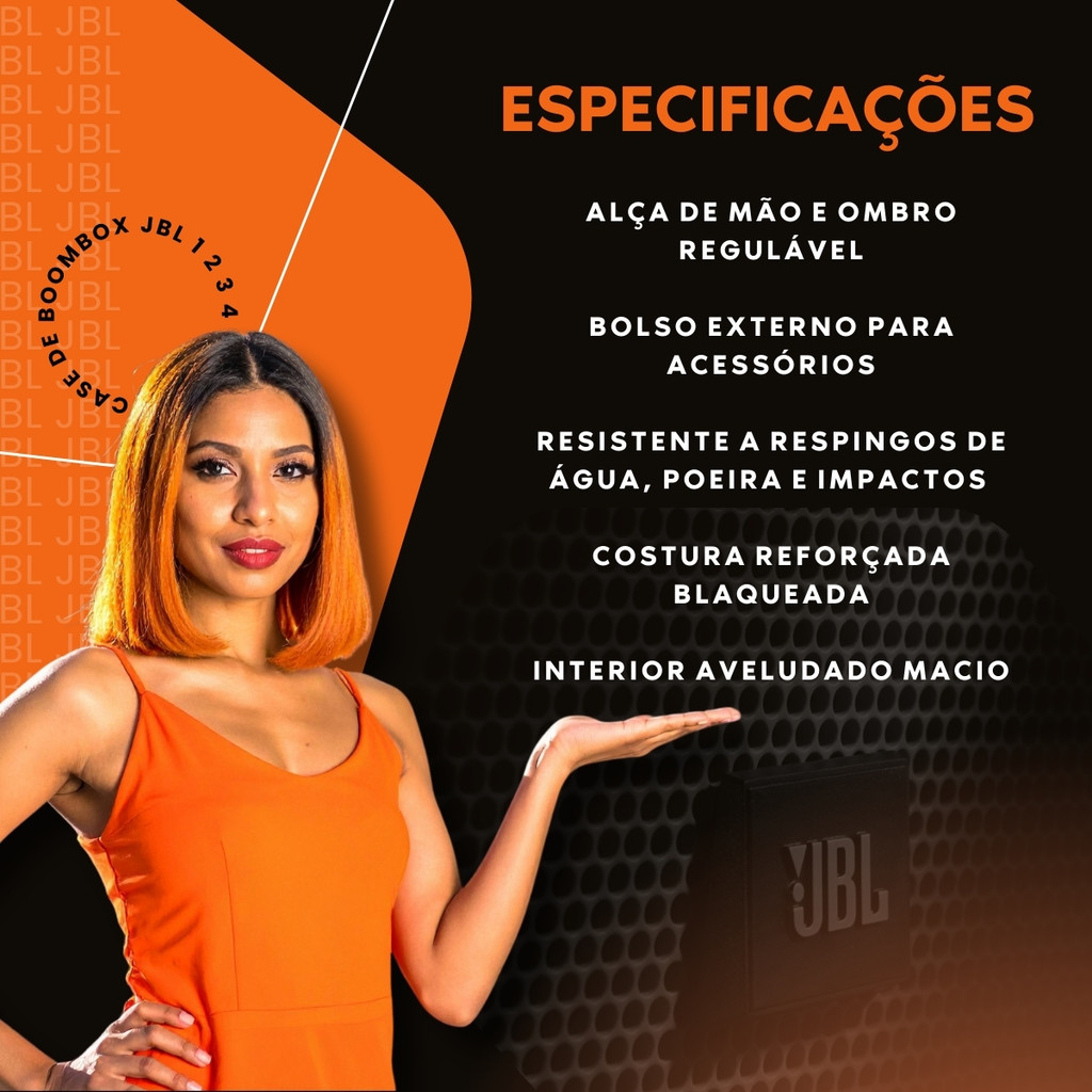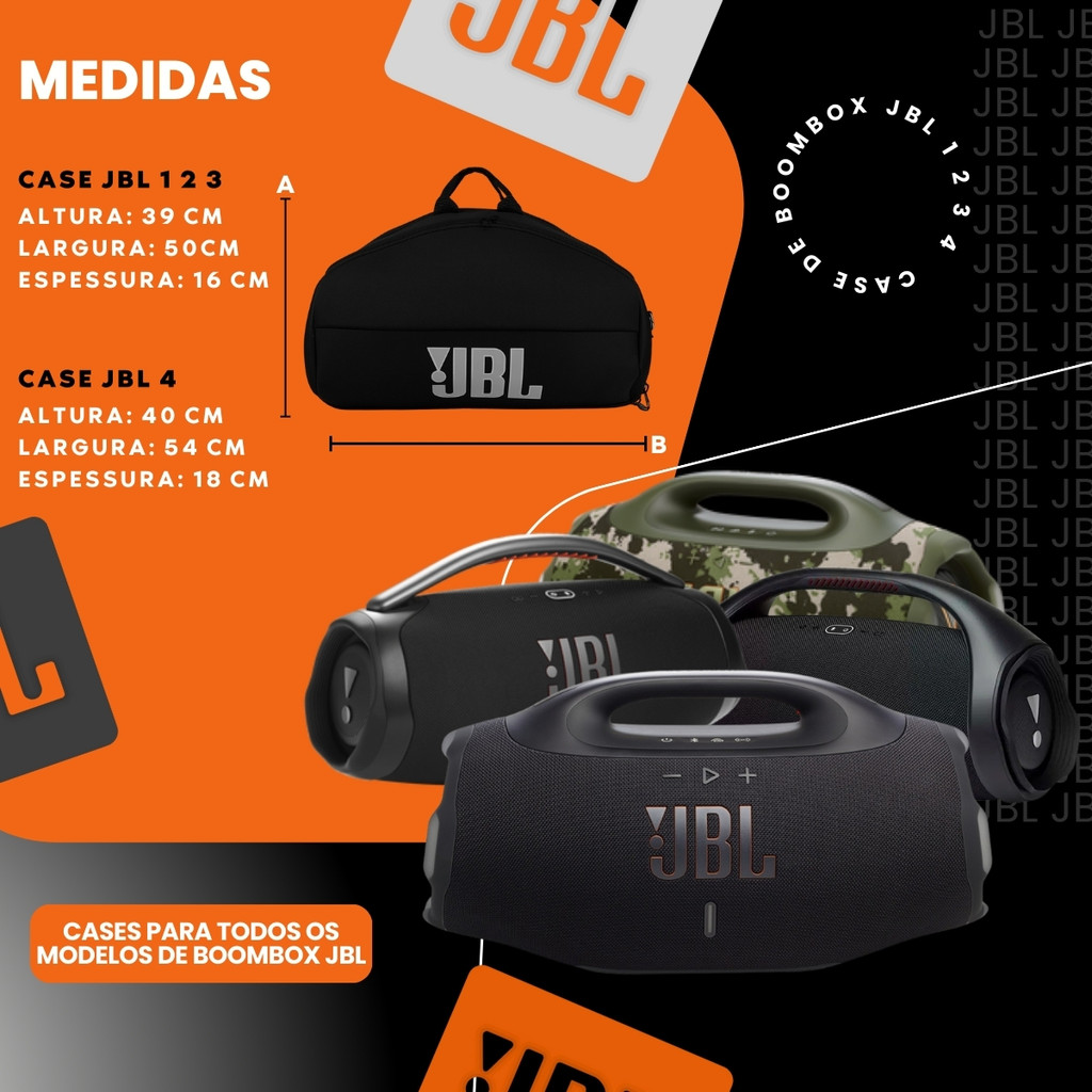 Capa pra Boombox JBL 1 2 3 4 C Bolso Externo Acessórios Compacta Reforçada Alça Dupla Interior Macio