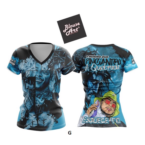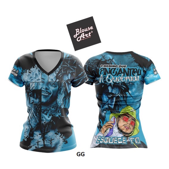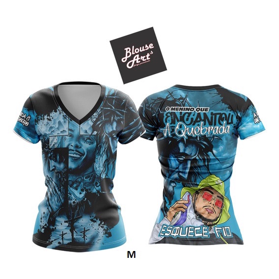 Camiseta de Quebrada Azul Homenagem MC Kevin O Menino Que Encantou A Quebrada Esquece Fio