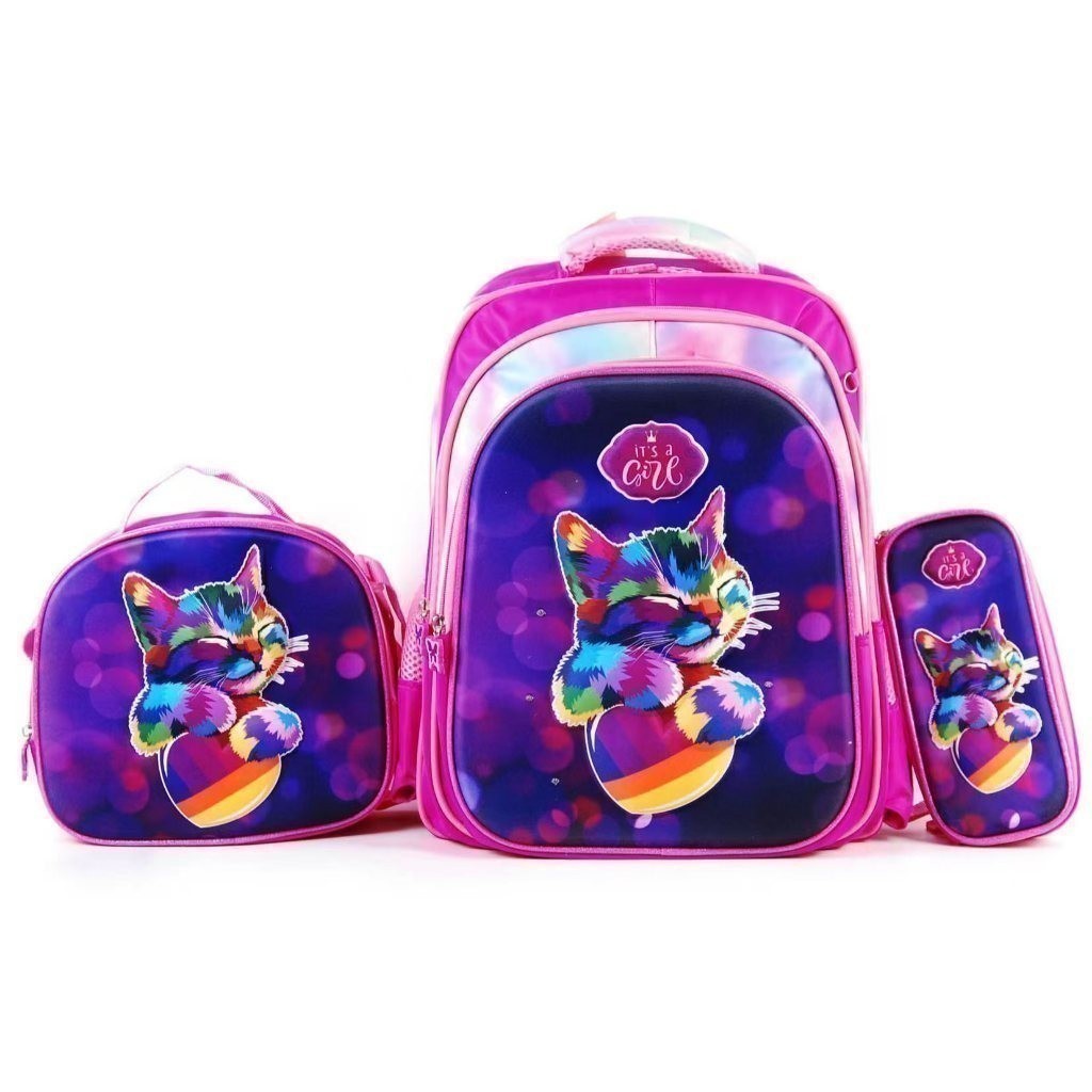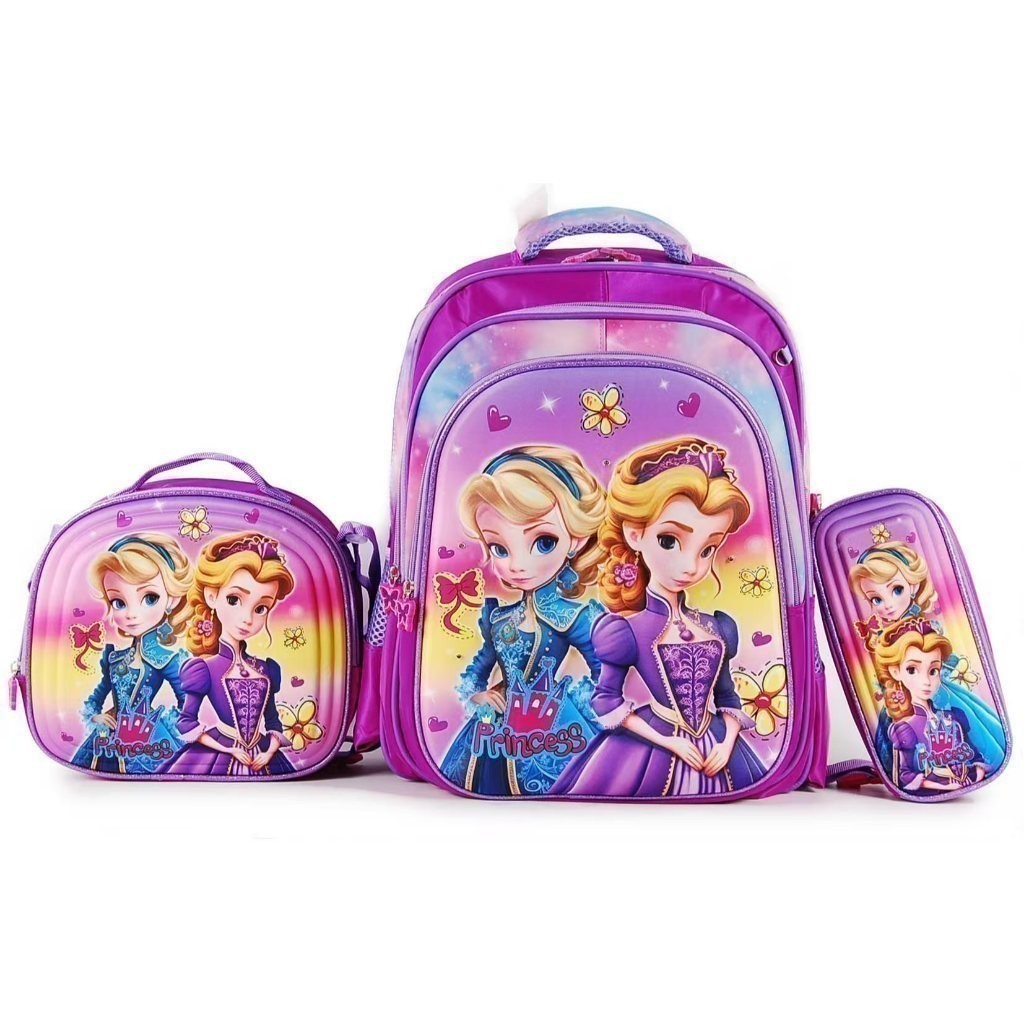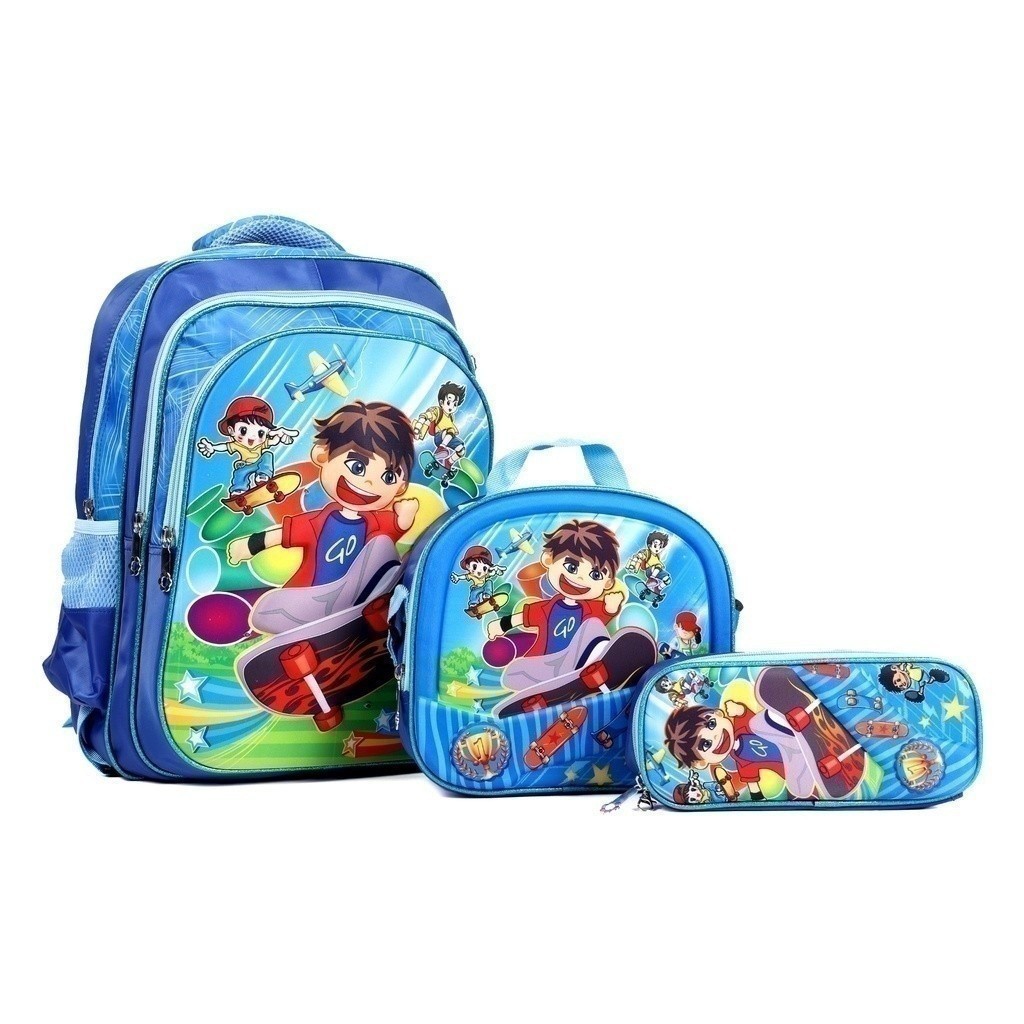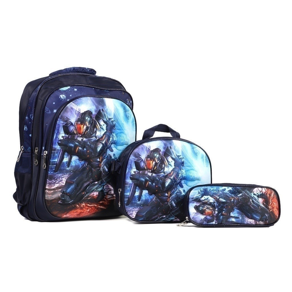 Kit Escolar Infantil Bolsa Lancheira Estojo Estampas 3D Menina e Menino com luzes