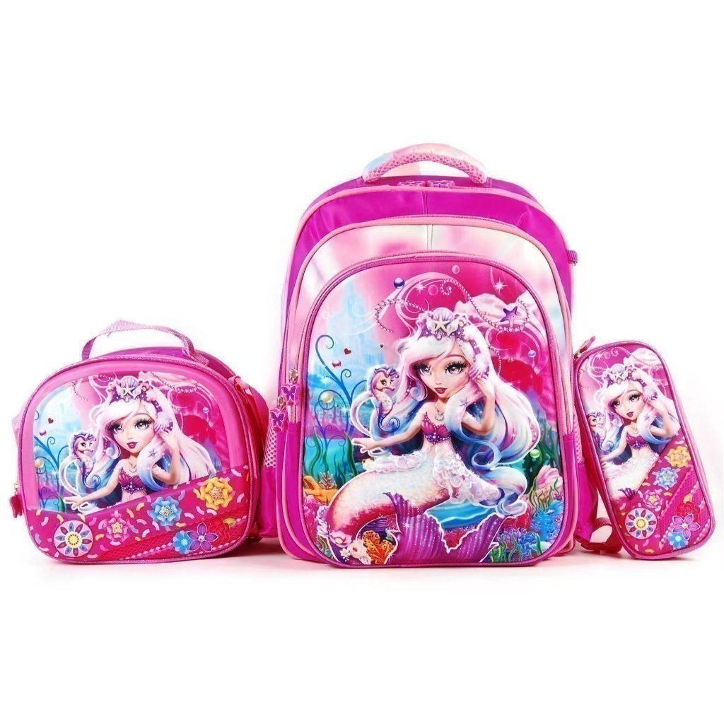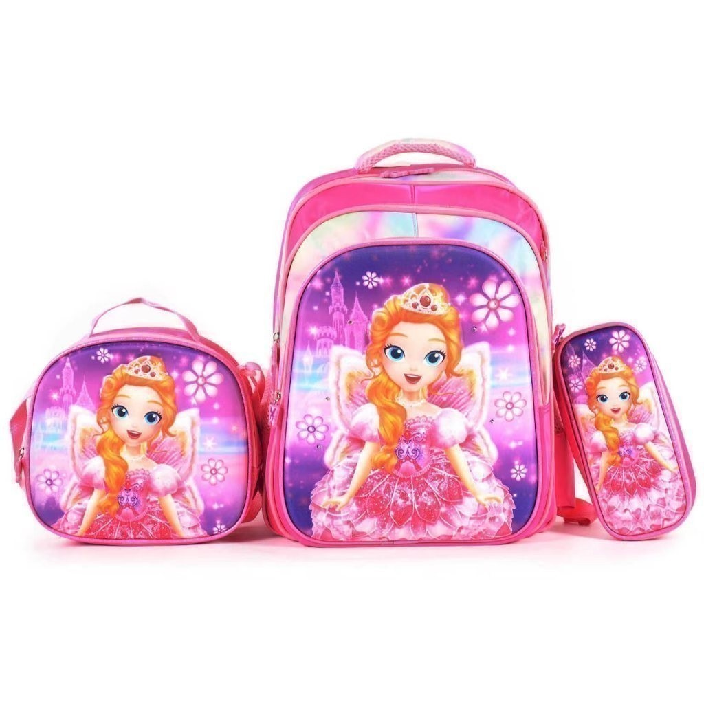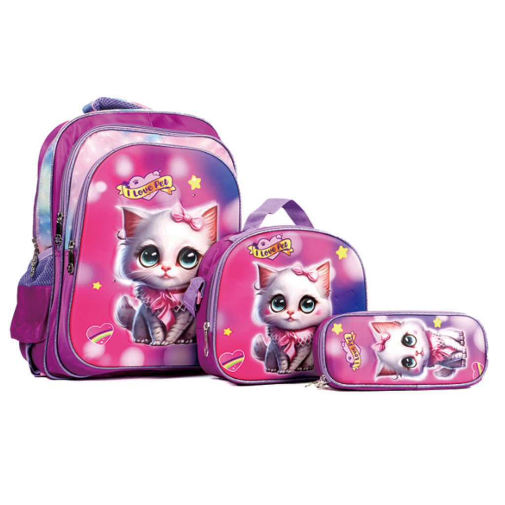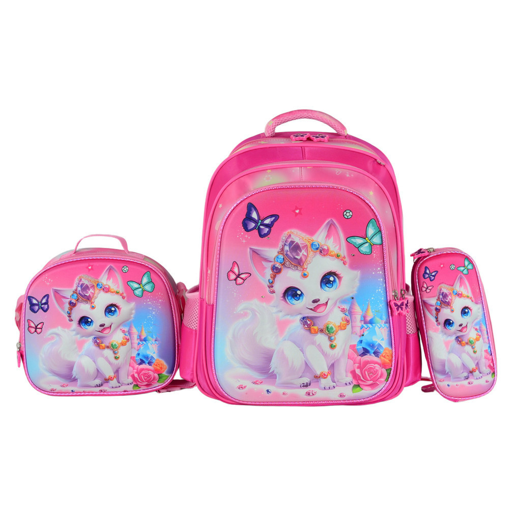 Kit Escolar Infantil Bolsa Lancheira Estojo Estampas 3D Menina e Menino com luzes