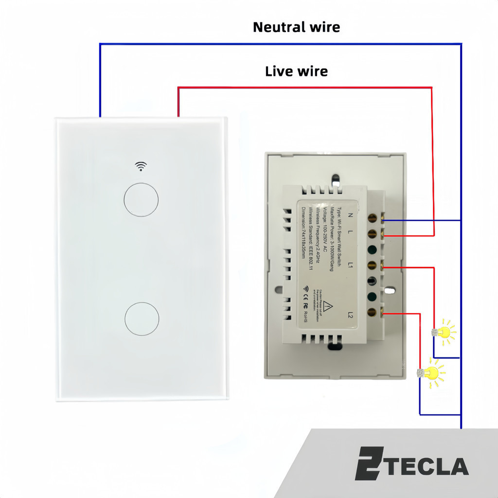 Tuya Smart Wi-Fi Switch 2 botões touch, celular, Alexa ou Google Home ANJGG
