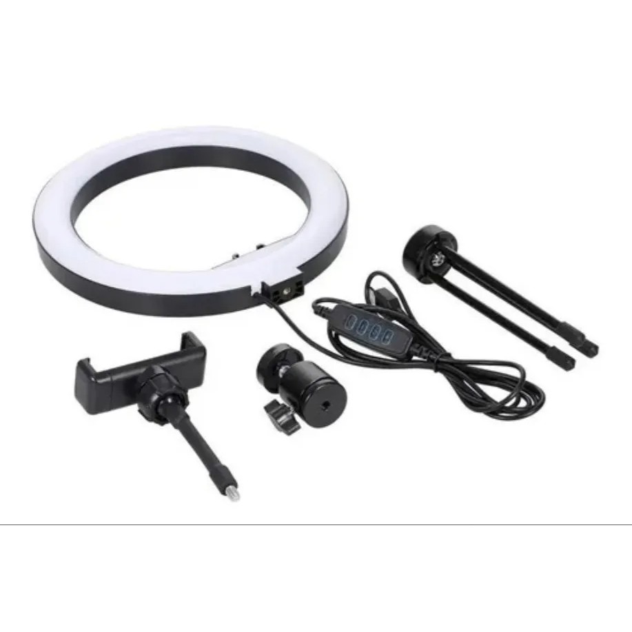 Anel Ring Light 8 Pol + Tripé De Mesa + Suporte Cel Video